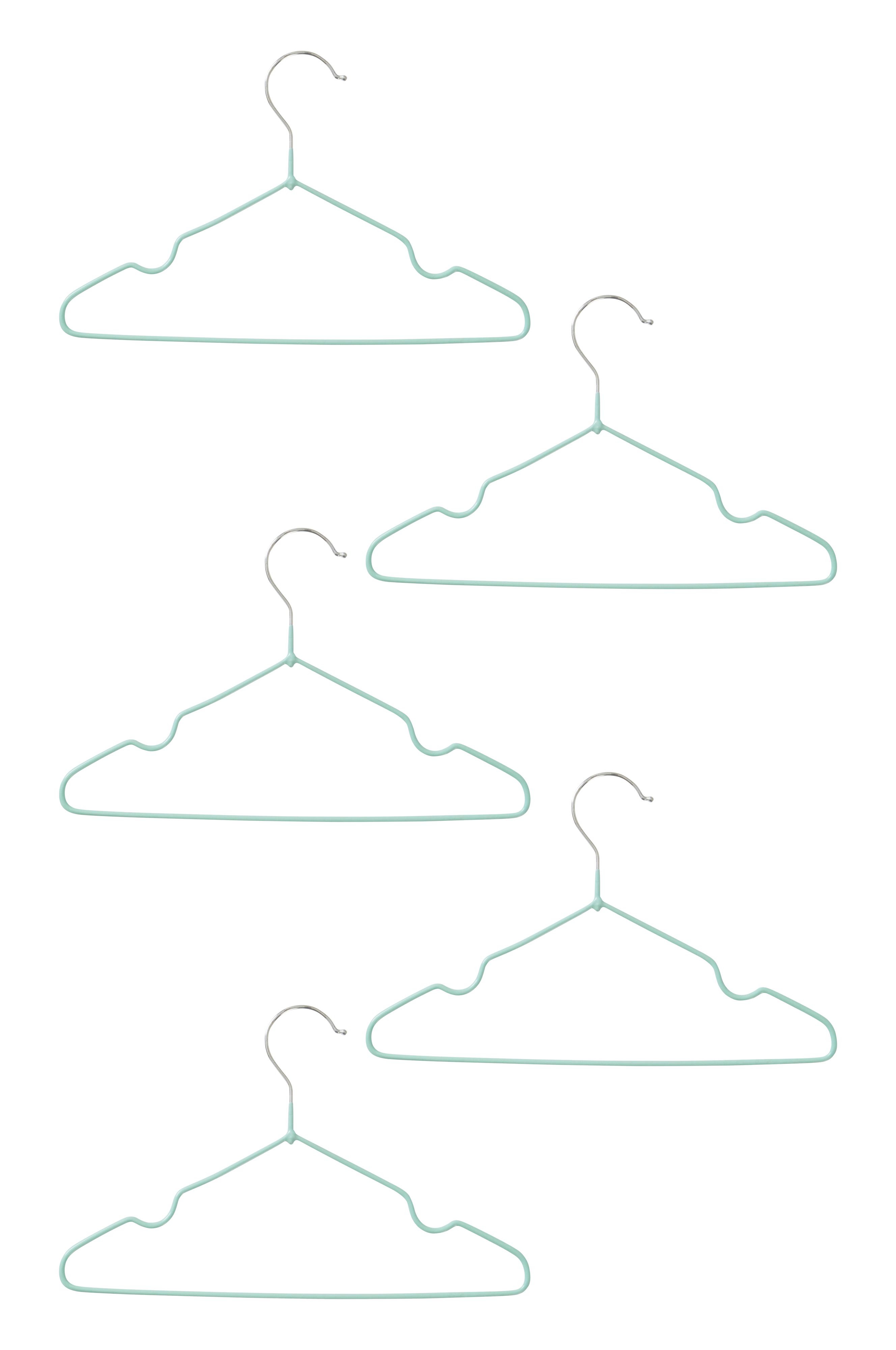 Vaateripustimet ruostumatonta terästä, joka on päällystetty jäätelövärisellä muovilla. 5/pakkaus. Vaateripustimet ovat käytännöllisiä ja vievät vain vähän tilaa vaatekaapissa. Nämä vaateripustimet ovat hieman tavallista pienempiä ja sopivat hyvin lasten vaatteille.