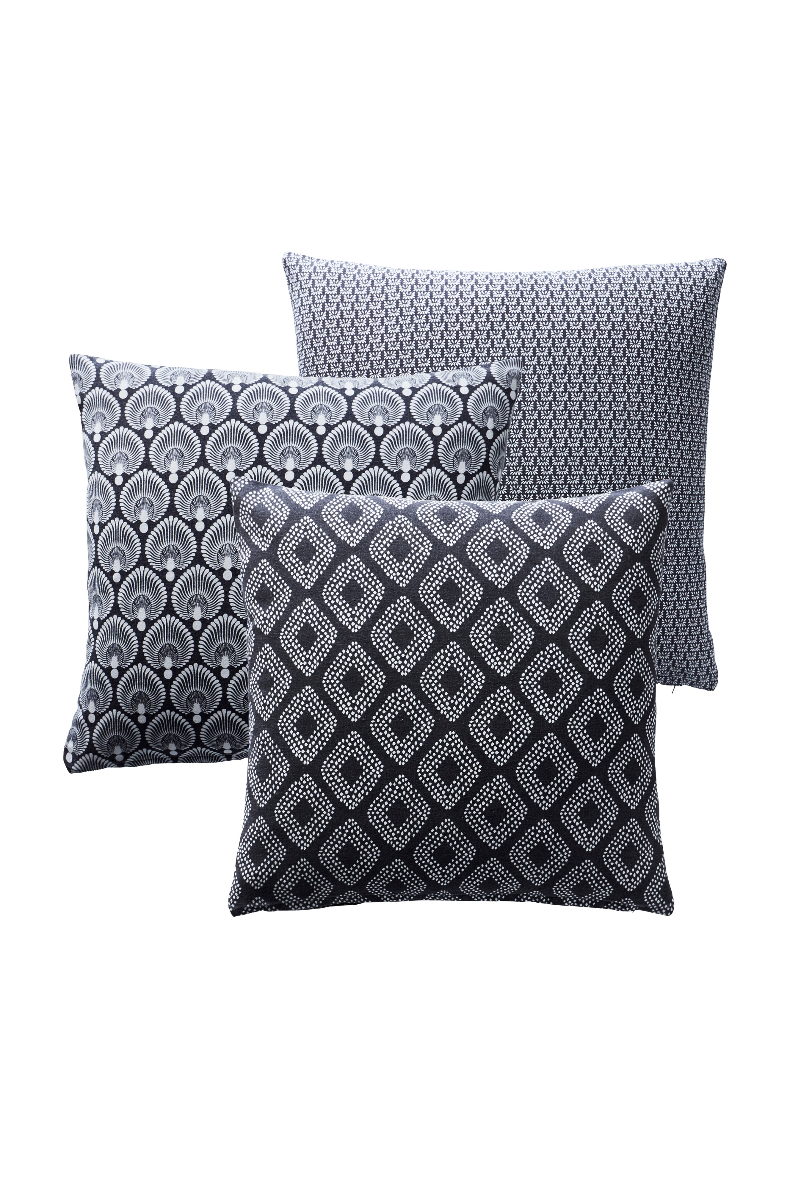 Tyynynpäälliset puuvillaa, jossa painettu kuvio. 3/pakkaus. Maalaisromanttiset ja viehättävän pienikuvioiset tyynynpäälliset sopivat moniin eri tyyleihin. Kolmessa tyynynpäällisessä on jokaisessa erilainen valkoinen kuvio värillisellä pohjalla. Alareunassa vetoketju.