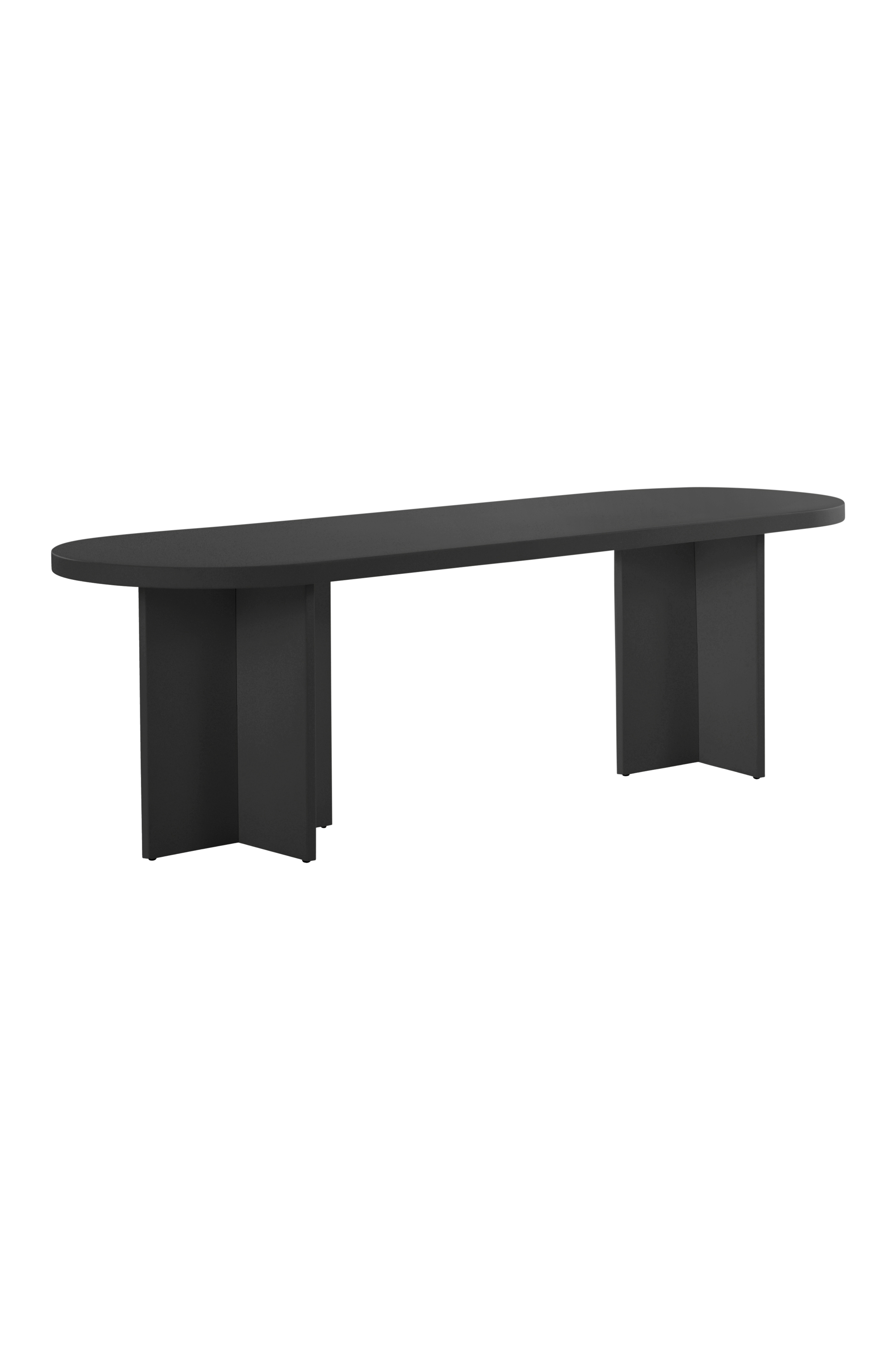 Soikea pöytä vesipohjaisella maalilla jauhemaalattua MDF-levyä. Harmonisen muotoinen pöytä sulautuu sisustukseen ja luo pehmeän vaikutelman. Kummassakin päässä on tukeva jalka, joka antaa pöydälle luonnetta, ja jalat on sijoitettu niin, että pöydässä on mukava istua. Mukana metallihelat pöytälevyn kiinnittämiseksi. Osittain koottava. Kokoamisohje mukana.