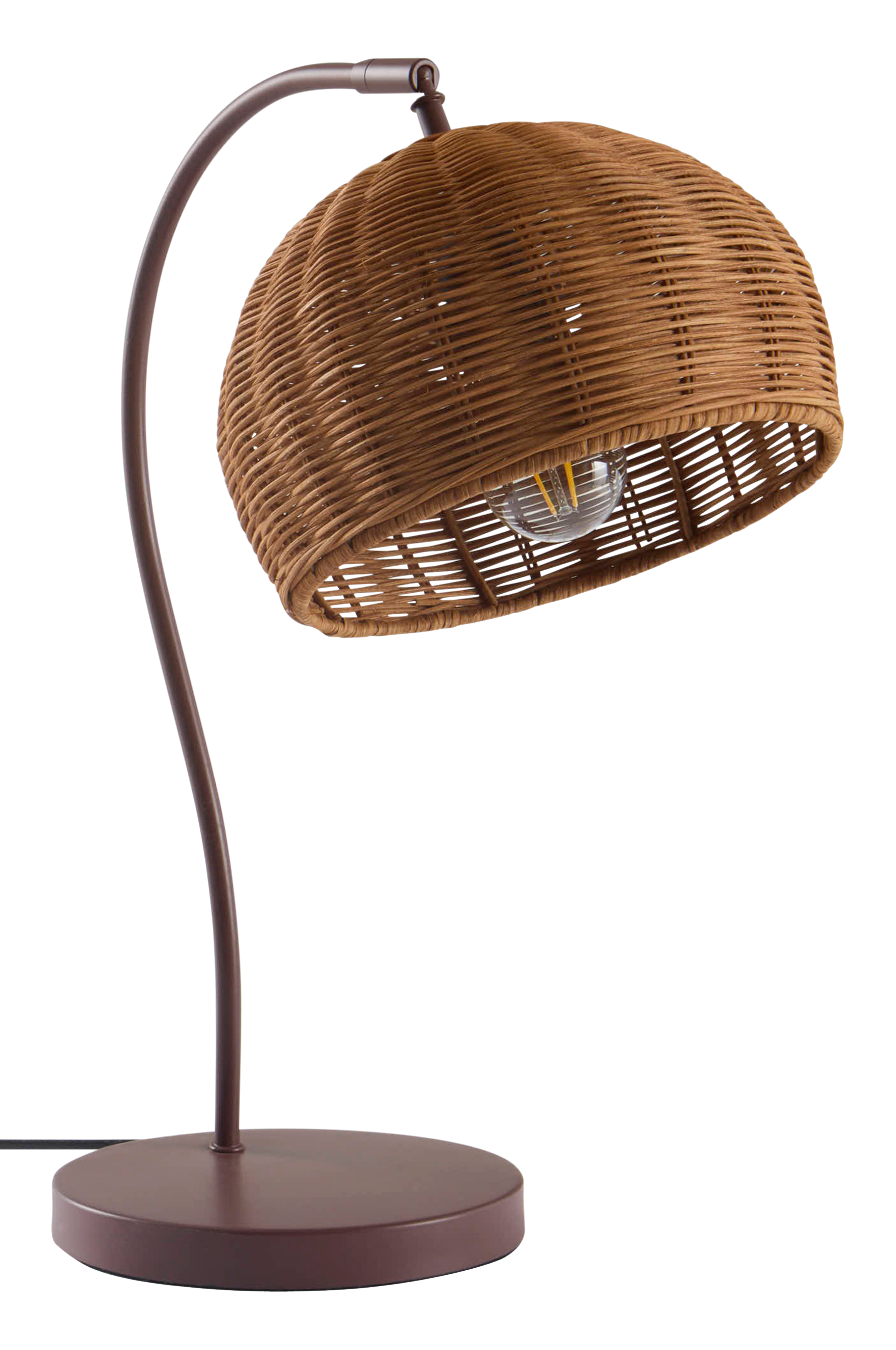 Pöytävalaisimessa CURLA on pyöreä rottinkivarjo, joka antaa miellyttävän valon.