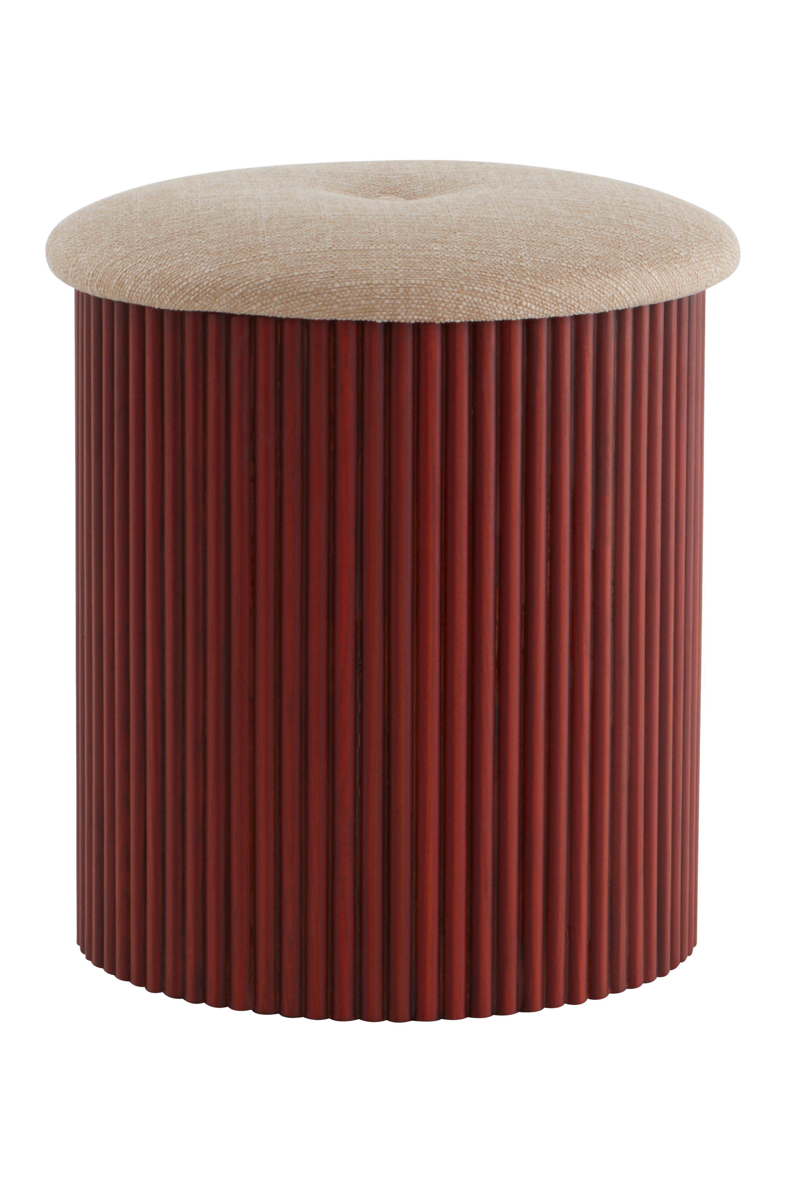 Rahi tai jakkara, jossa pehmustettu istuin ja jalka massiivisaarnea, joka on päällystetty pyöreillä, saarnesta valmistetuilla rimoilla. Rahin kansi/istuin on erittäin kestävää polyesterikangasta, jonka Martindale-arvo on 40 000. Kangas on kudottu eripaksuisista langoista, jotka antavat kankaalle rakennetta ja kevyesti meleeratun ilmeen. Istuimessa on pehmeä vaahtotäyte ja syvään upotettu koristenappi keskellä. Jakkaran kannen alla on kätevä säilytystila. Jakkara on huolella työstetty ja puurunko on päällystetty halkaistuilla pyöreillä rimoilla, jotka luovat tyylikkään ulkopinnan. DARWIN on kätevä ja monikäyttöinen huonekalu. Se sopii erinomaisesti eteiseen vaikkapa pipojen ja lapasten säilyttämiseen. Olohuoneessa rahia tai jakkaraa voidaan käyttää esimerkiksi pehmeiden torkkupeittojen säilyttämiseen. DARWIN-rahi sopii monenlaiseen käyttöön. Varaistumapaikkoja on aina hyvä olla olemassa.