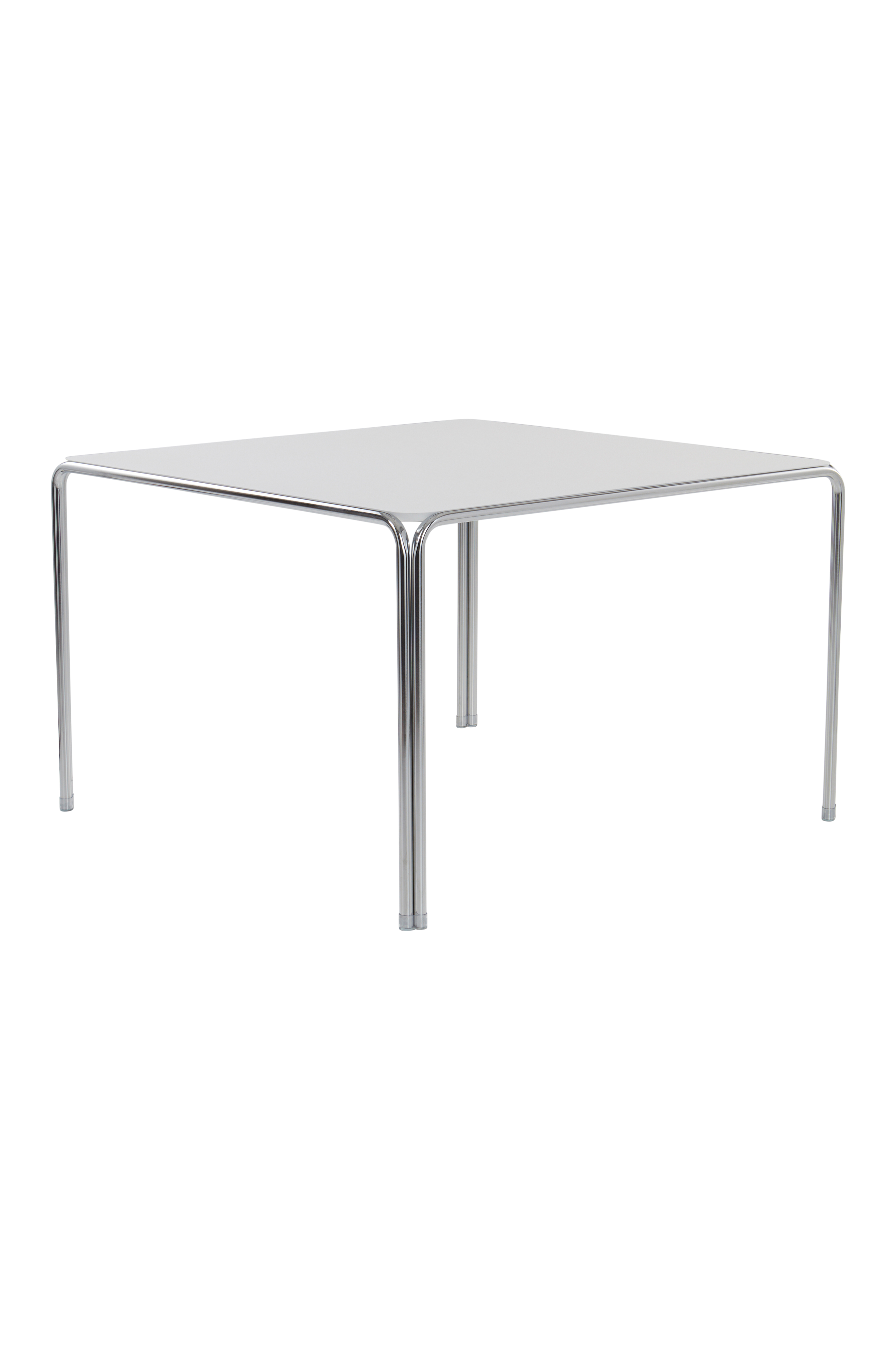 Pelkistetty neliönmuotoinen ruokapöytä, jossa MDF-pöytälevy ja rautajalat. DAYTON-pöydässä on 80-luvun tyyliä huokuva klassinen muotoilu, lakattu pinta ja krominväriset jalat. Lakka on vesipohjaista. Neliönmuotoisen pöydän ympärillä syntyy viihtyisä päivällistunnelma, kun kaikki näkevät toisensa kasvokkain eikä ruokailijoiden tarvitse istua rivissä. Osittain koottava. Kokoamisohje mukana.