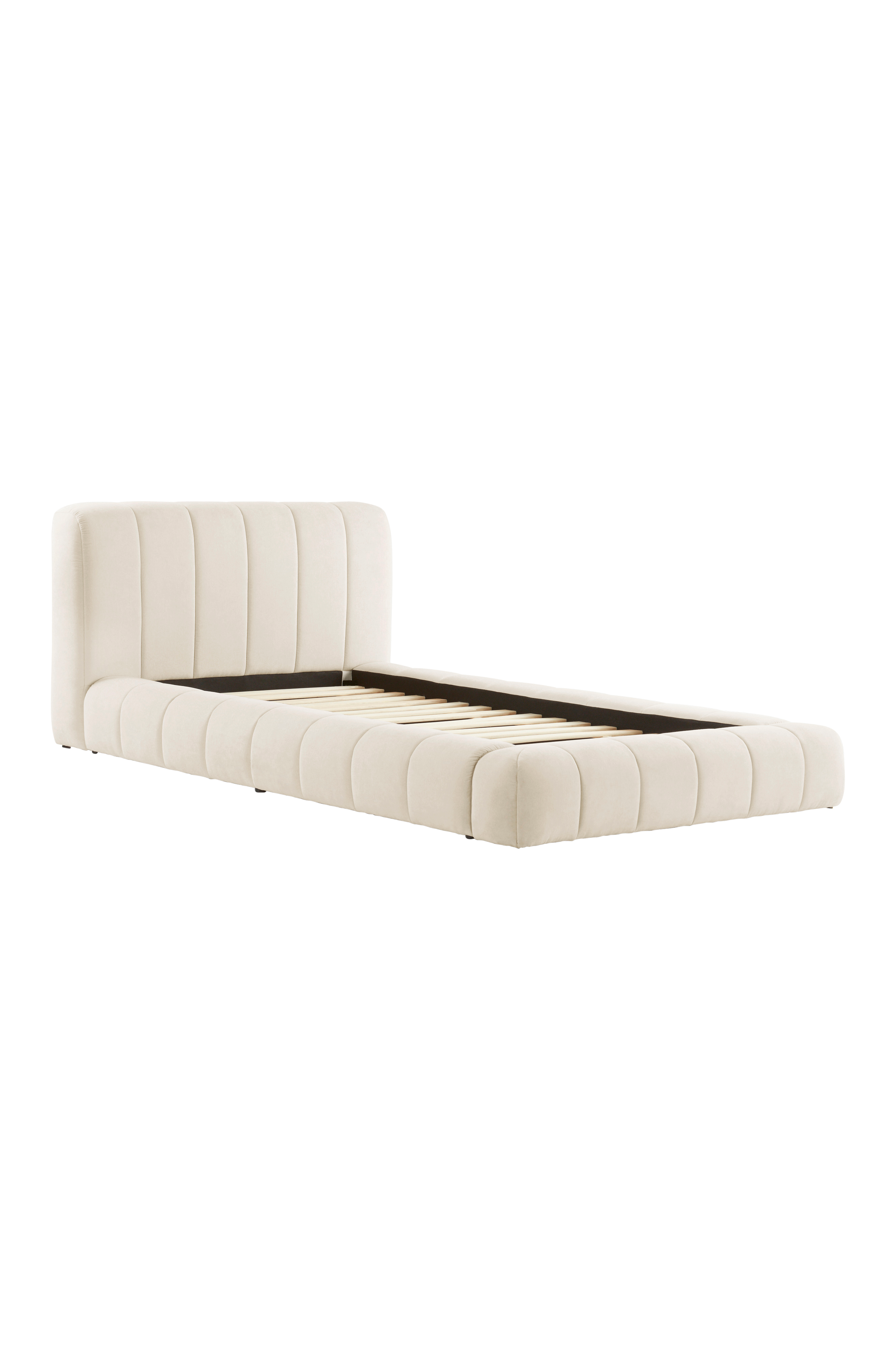 Pehmeä, pyöreämuotoinen, muhkea ja houkutteleva sängynrunko. Sängynpääty ja runko ympäriinsä on topattu pehmeiksi ja päällystetty neutraalilla ja helposti yhdisteltävällä yksivärisellä polyesterikankaalla. Pystysuorat saumat tekevät sängystä erittäin tyylikkään. Kestävän kankaan Martindale-arvo on 33 000. Sängyn ympärillä oleva runko ulottuu lähes lattiaan asti, vain pieni ilmarako on jätetty, jotta ilma pääsee kiertämään sängyn alla. Runko FSC-sertifioitua mäntyä ja vaneria. Sängynrungossa on mäntyinen sälepohja, ja voit täydentää rungon mieleisilläsi patjoilla tai joustinpatjoilla. Seinäkiinnikkeet mukana. Patja/joustinpatja ei sisälly toimitukseen. Osittain koottava. Kokoamisohje mukana.