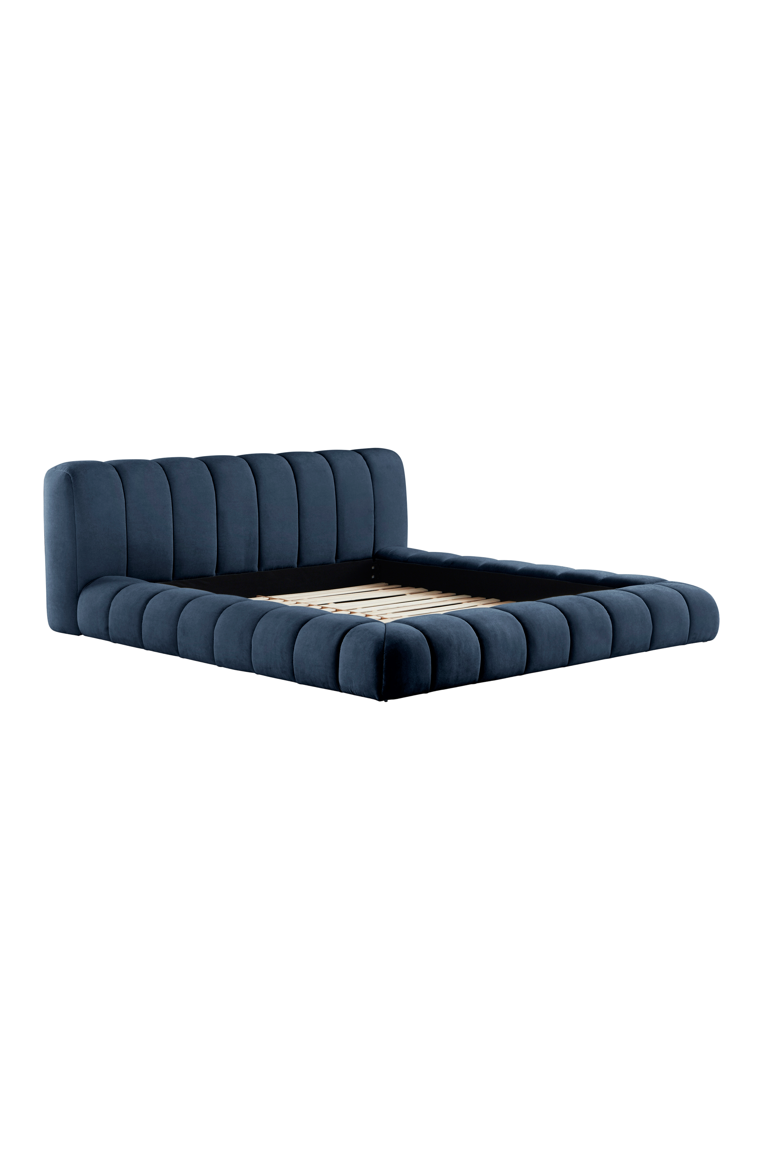 Pehmeä, pyöreämuotoinen, muhkea ja houkutteleva sängynrunko. Sängynpääty ja runko ympäriinsä on topattu pehmeiksi ja päällystetty neutraalilla ja helposti yhdisteltävällä yksivärisellä polyesterikankaalla. Pystysuorat saumat tekevät sängystä erittäin tyylikkään. Sängyn ympärillä oleva runko ulottuu lähes lattiaan asti, vain pieni ilmarako on jätetty, jotta ilma pääsee kiertämään sängyn alla. Runko FSC-sertifioitua mäntyä ja vaneria. Sängynrungossa on mäntyinen sälepohja, ja voit täydentää rungon mieleisilläsi patjoilla tai joustinpatjoilla. Patja/joustinpatja ei mukana.