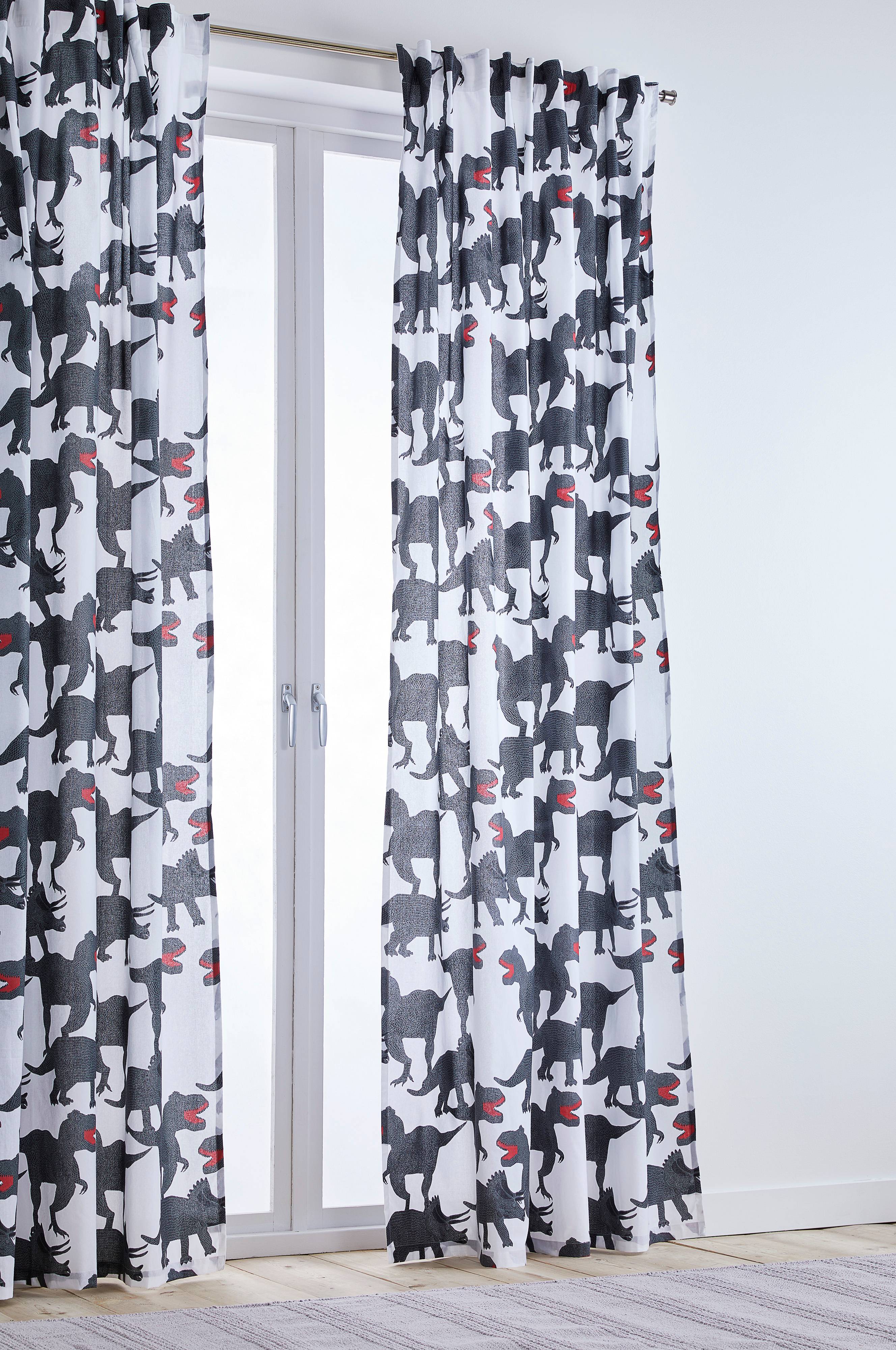 Sivuverhot pehmeää ekologista puuvillaa, 2/pakk. Päälleommeltu monitoiminauha. Painettu kuvio, jossa suloisia pieniä dinosauruksia. Monitoiminauhan ansiosta verhon voi ripustaa piilolenkkien, kujan sekä poimutusnauhan ja ripustuskoukkujen avulla.
