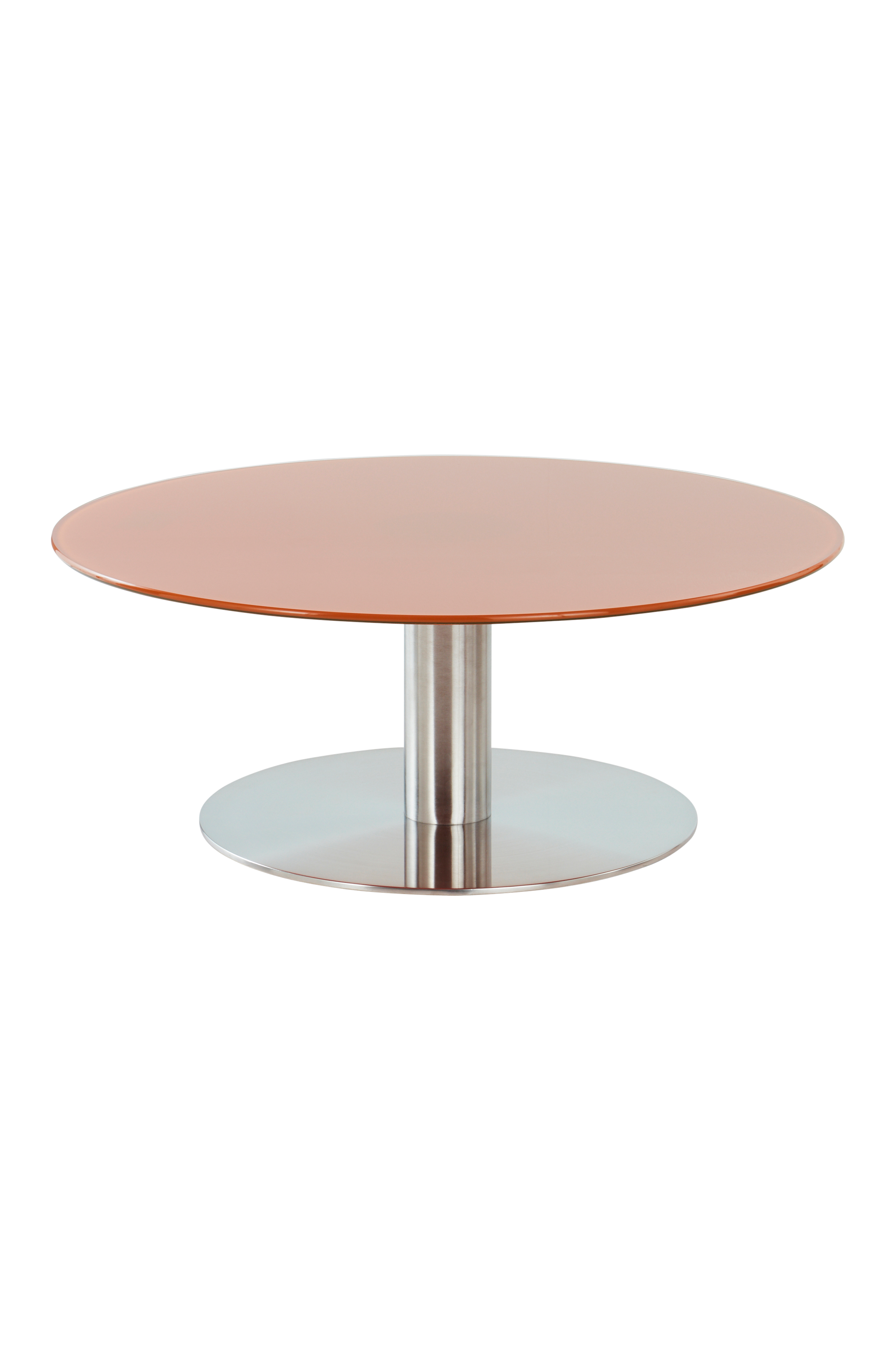 Pyöreä sohvapöytä, jossa lasilevy. Pilarijalka ruostumatonta terästä, jossa harjattu pinta. Suora jalka on tyylikäs ja harmonisoituu hienosti lasiseen pöytälevyyn jalan näkyessä lasin läpi luoden tyylikkään keskipisteen. Matala pöytä luo miellyttävää loungehenkeä sohvan ympärille. Osittain koottava. Kokoamisohje mukana.