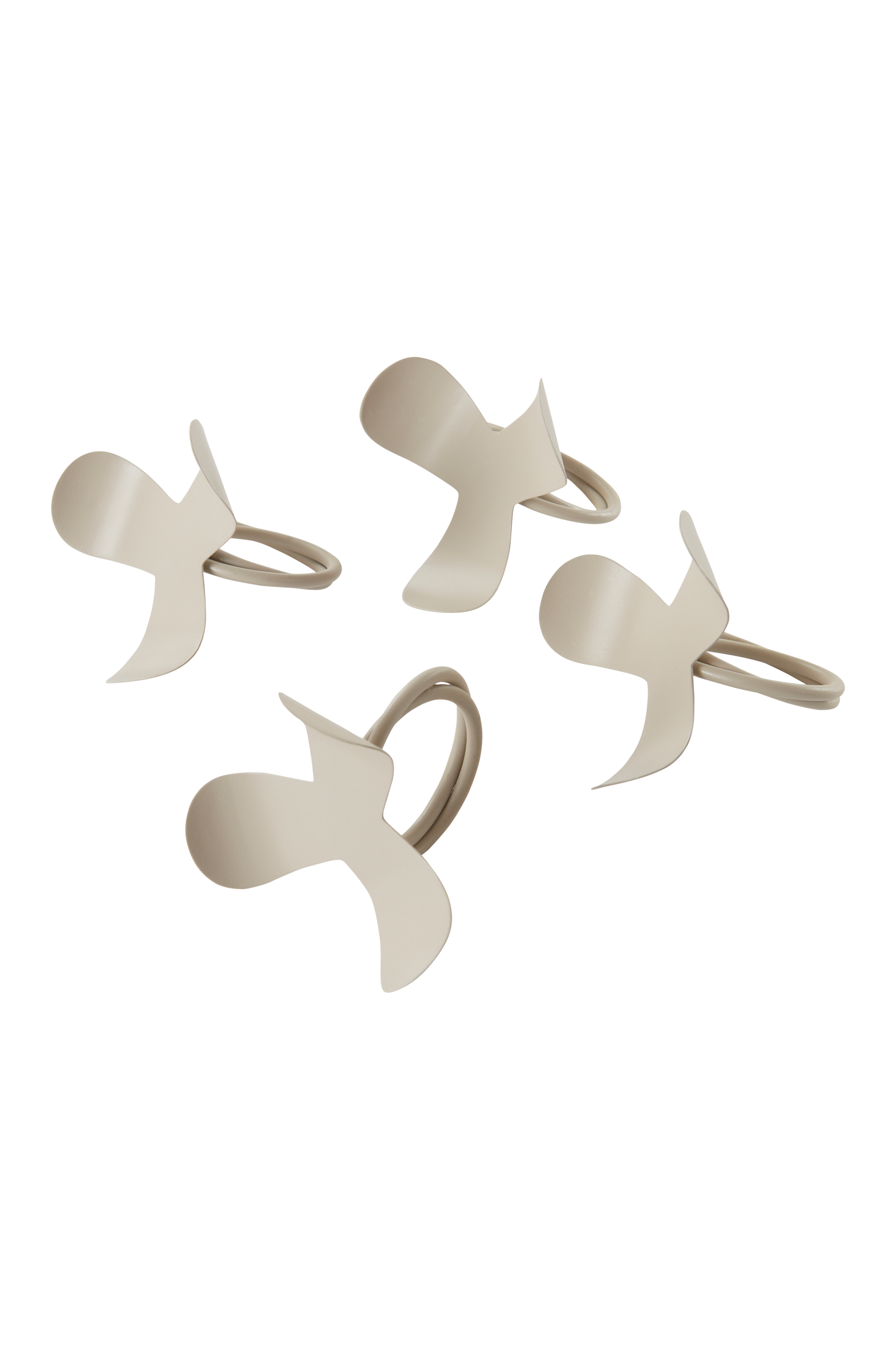 Teräksiset lautasliinarenkaat, 4/pakkaus. Kaksi yhteenkiedottua rengasta, joihin on kiinnitetty suuri, tyylikäs kukka. Jauhemaalattu mattapinta.