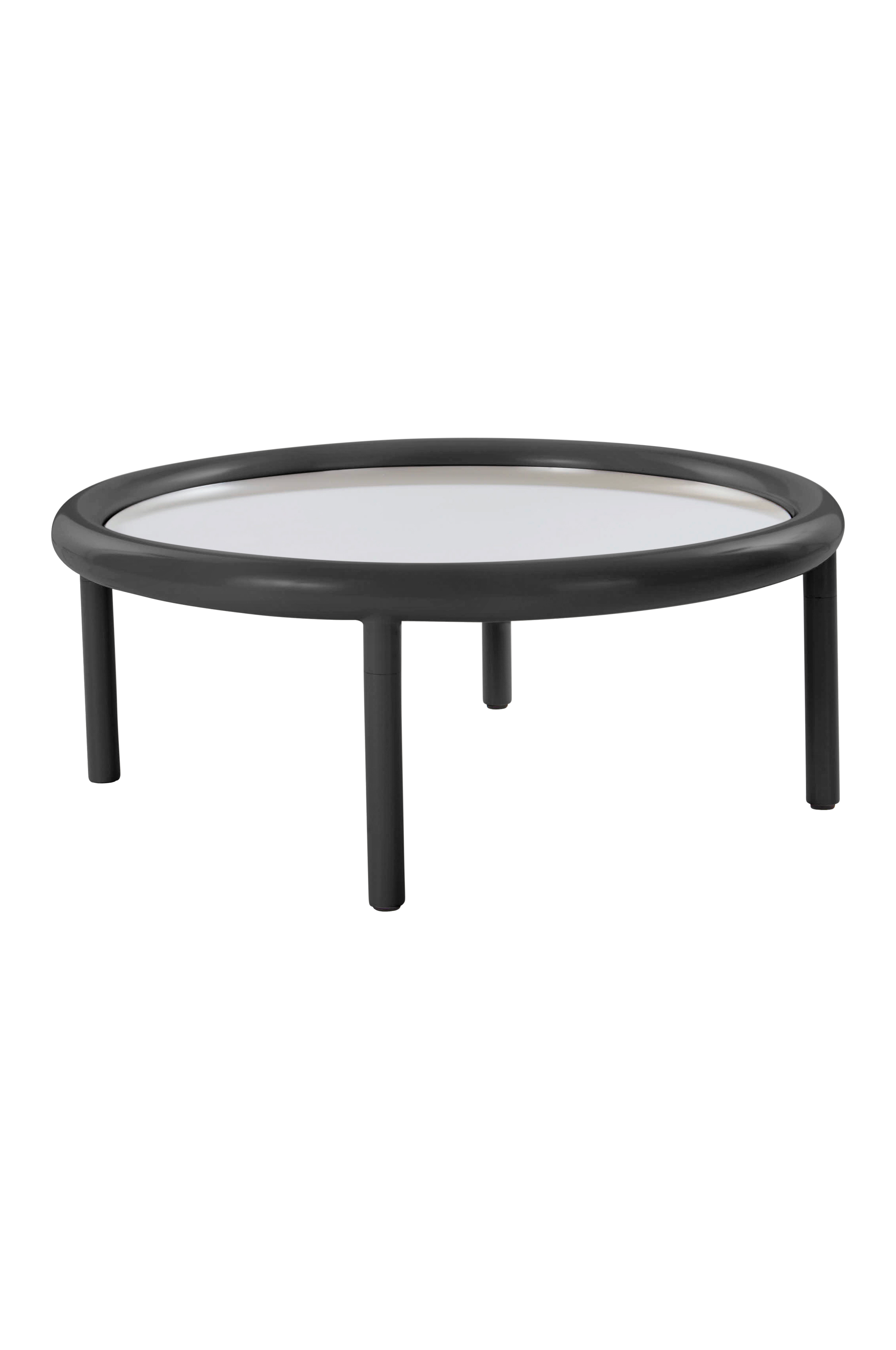 DUXSON-sohvapöydässä on peilattu lasinen pöytälevy ja tyylikäs, pyöreä muotoilu, joka korostaa mitä tahansa asuintilaa.
