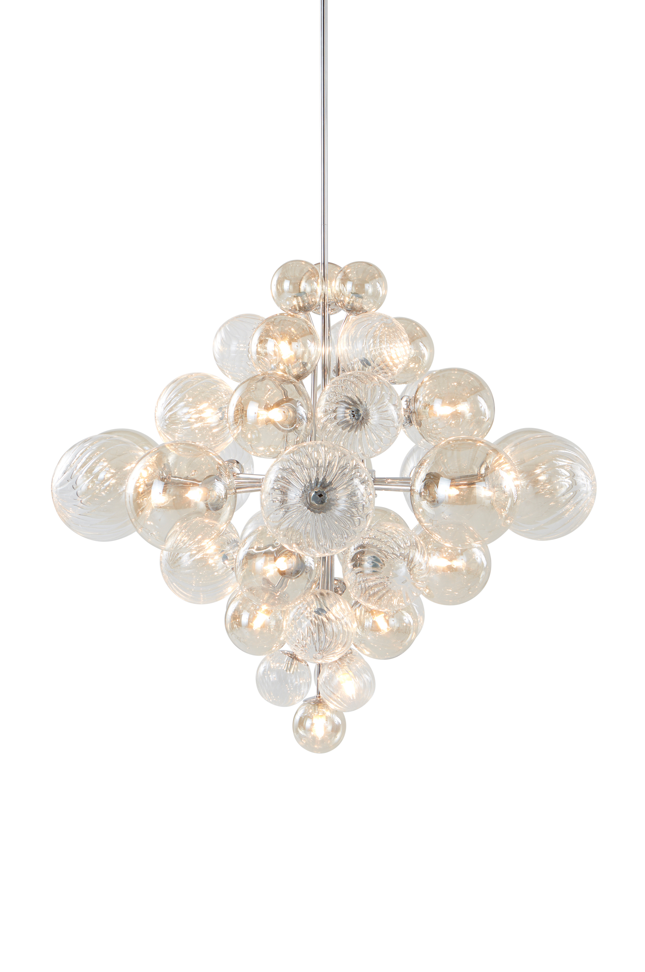ELECTRA-kruunussa on tyylikäs metallijalusta ja kirkkaat lasikupolit, jotka luovat viihtyisän hehkun ja ylellisen tunnelman. Se sopii täydellisesti ruokailutilojen valaisemiseen, ja sen koristeelliset lasielementit lisäävät modernia hienostuneisuutta, mikä tekee siitä upean keskipisteen nykyaikaiseen sisustukseen.
