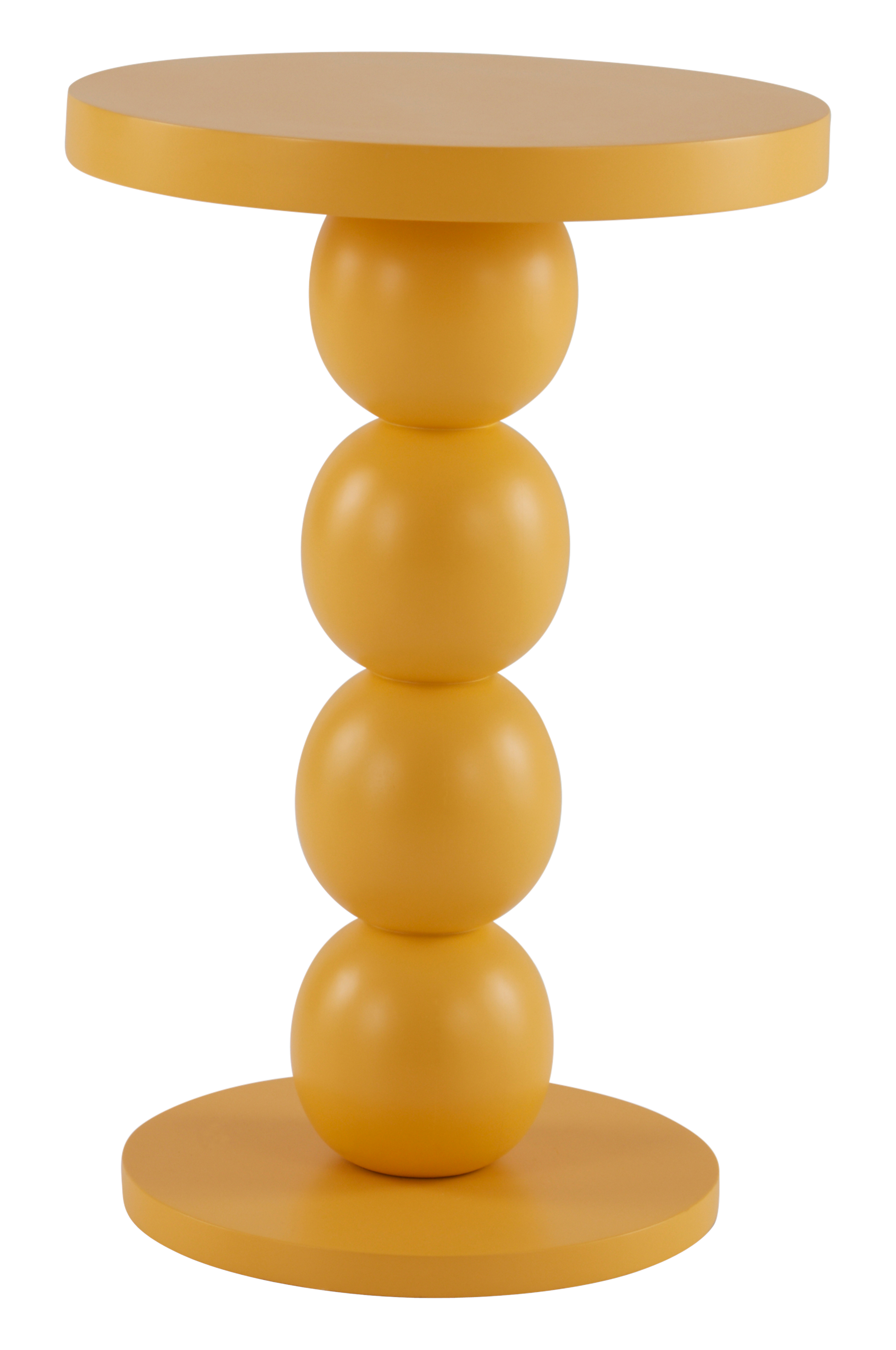 Pyöreä sivupöytä massiivista mangopuuta, joka on maalattu iloisen väriseksi. Pienen yksivärisen pilaripöydän muoto saa monet hymyilemään. Pöytä on pirteä sekä muodoltaan että väriltään.
