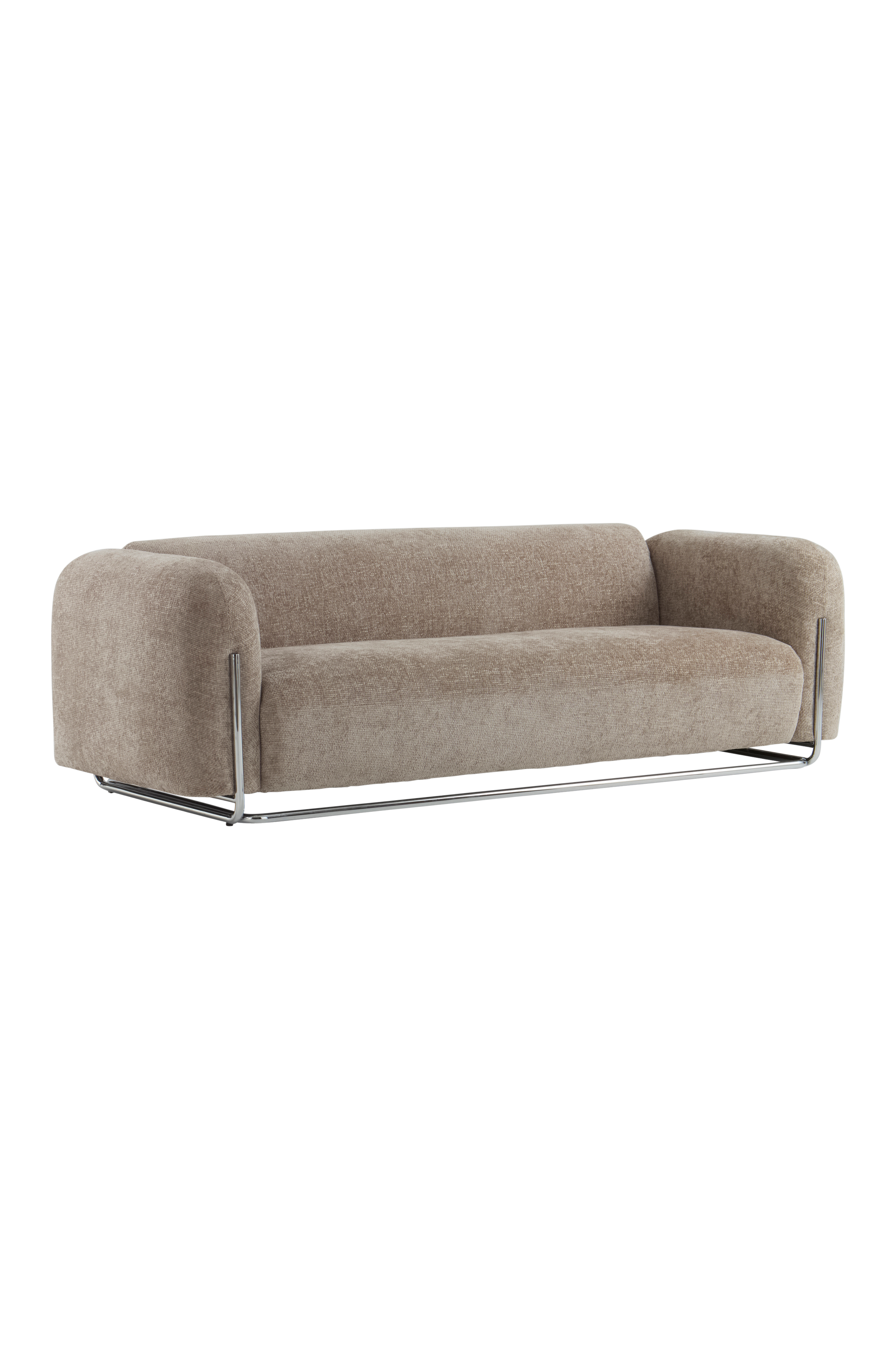 Sohva EVERMANissa on trendikäs, pyöristetty muotoilu, jossa on kromatut putkijalat, ja se on valmistettu chenillekankaasta, joka tuo mukavuutta ja nykyaikaista tyyliä. Tämä 3-paikkainen sohva tarjoaa muhkean pinnan ja tyylikkään ulkonäön, mikä tekee siitä viihtyisän keskipisteen olohuoneeseesi.