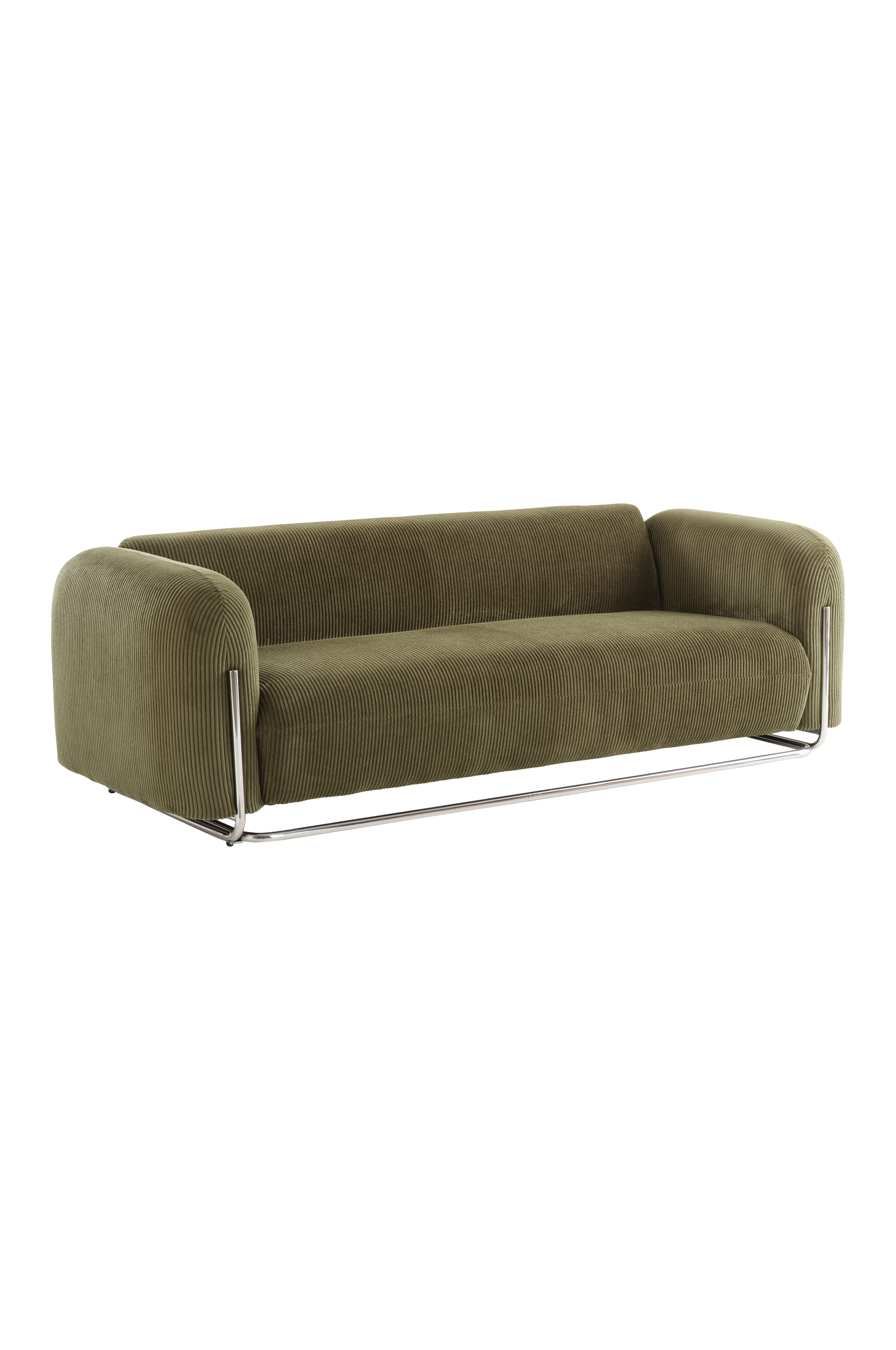 EVERMAN 3-istuttava sohva on modernin tyylikäs pyöreän muotoilunsa ja ylellisen kordinvärisen verhoilunsa ansiosta. Kromiset metalliputkijalat lisäävät nykyaikaista tunnelmaa, mikä tekee siitä statement-kappaleen mihin tahansa olohuoneeseen. Sopii täydellisesti rentoutumiseen tyylillä.