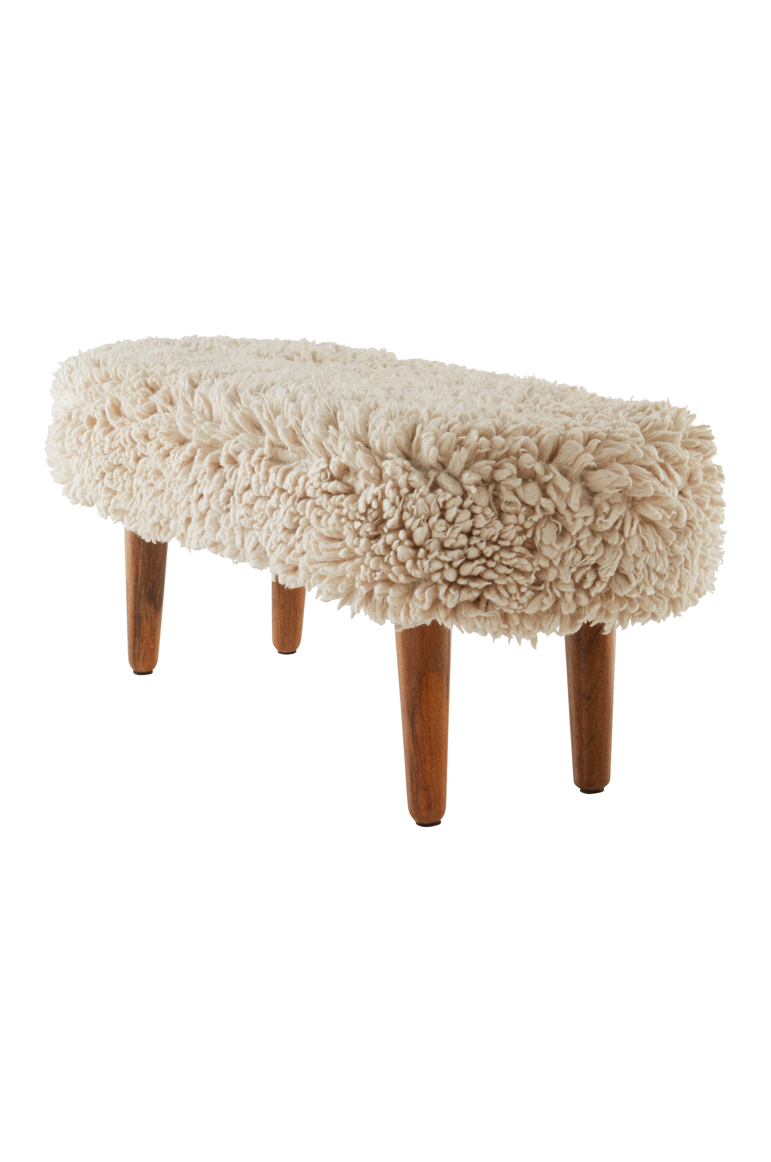 Penkki, jossa miellyttävän pörröinen päällinen ja tyylikkäät mangopuiset jalat. Päällinen on käsin tuftattua villaa, hienoa käsityötä. Myötäilevällä PU-vaahdolla pehmustetulla penkillä on pehmeä ja mukava istua. Nukan pituus 4-4,5 cm.