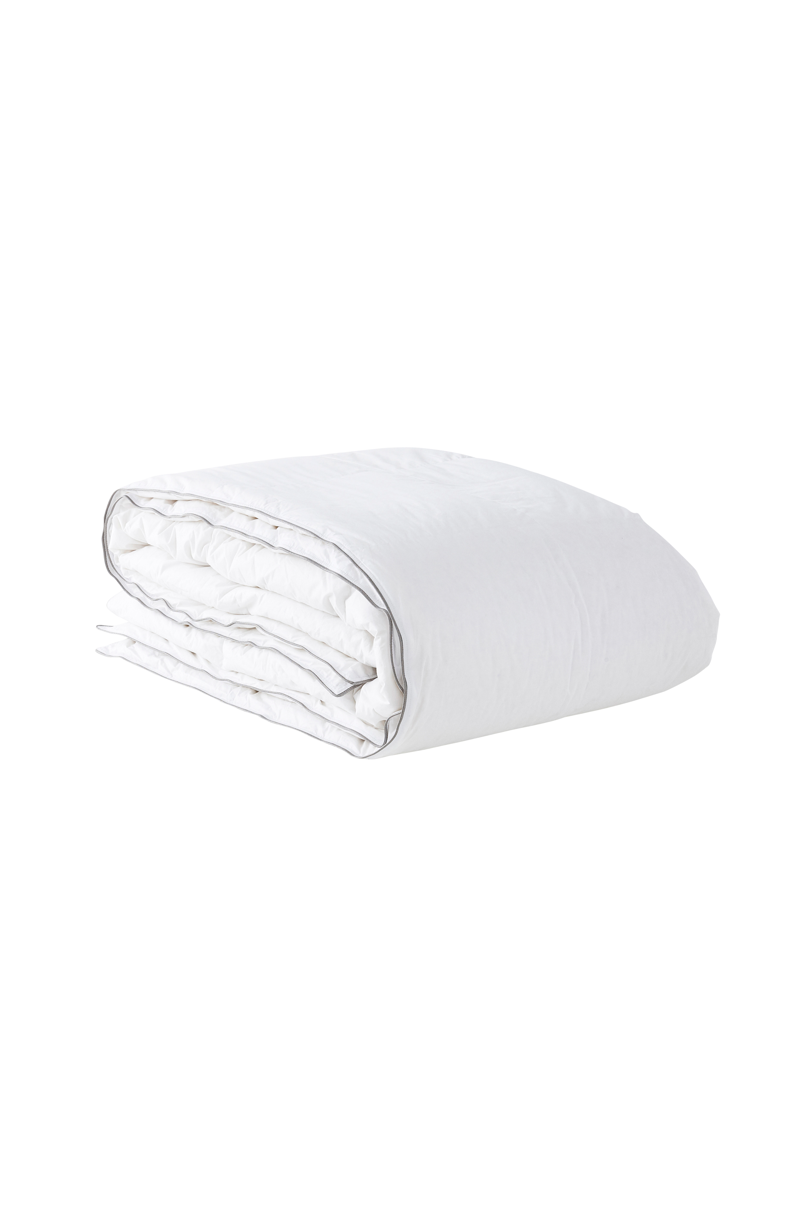 Yksivärinen peitto, jossa täyte vesilinnun untuvaa ja vesilinnun höyheniä. Tuote kuuluu J-premium-laatuluokkaan. Korkea untuvamäärä tekee peitosta kevyen, lämpimän ja muhkean. Päällinen puuvillaperkaalia. Kaksoissaumat ja satiininen terenauhareuna ympäriinsä. Esikutistettu sekä pehmeäksi, myötäileväksi ja hiljaiseksi käsitelty. Ei kahise. Ommellut väliseinät pitävät miellyttävän lämpimän untuvatäytteen paikallaan. Viileä peitto sopii sinulle, joka tunnet olosi lämpimäksi nukkuessasi. Neliönmalliset väliseinät saavat untuvan jakautumaan tasaisesti. Toimitetaan tyylikkäässä kangaslaukussa. Päälleommeltu J-premium-merkki. Täytteen paino 130 g/m².