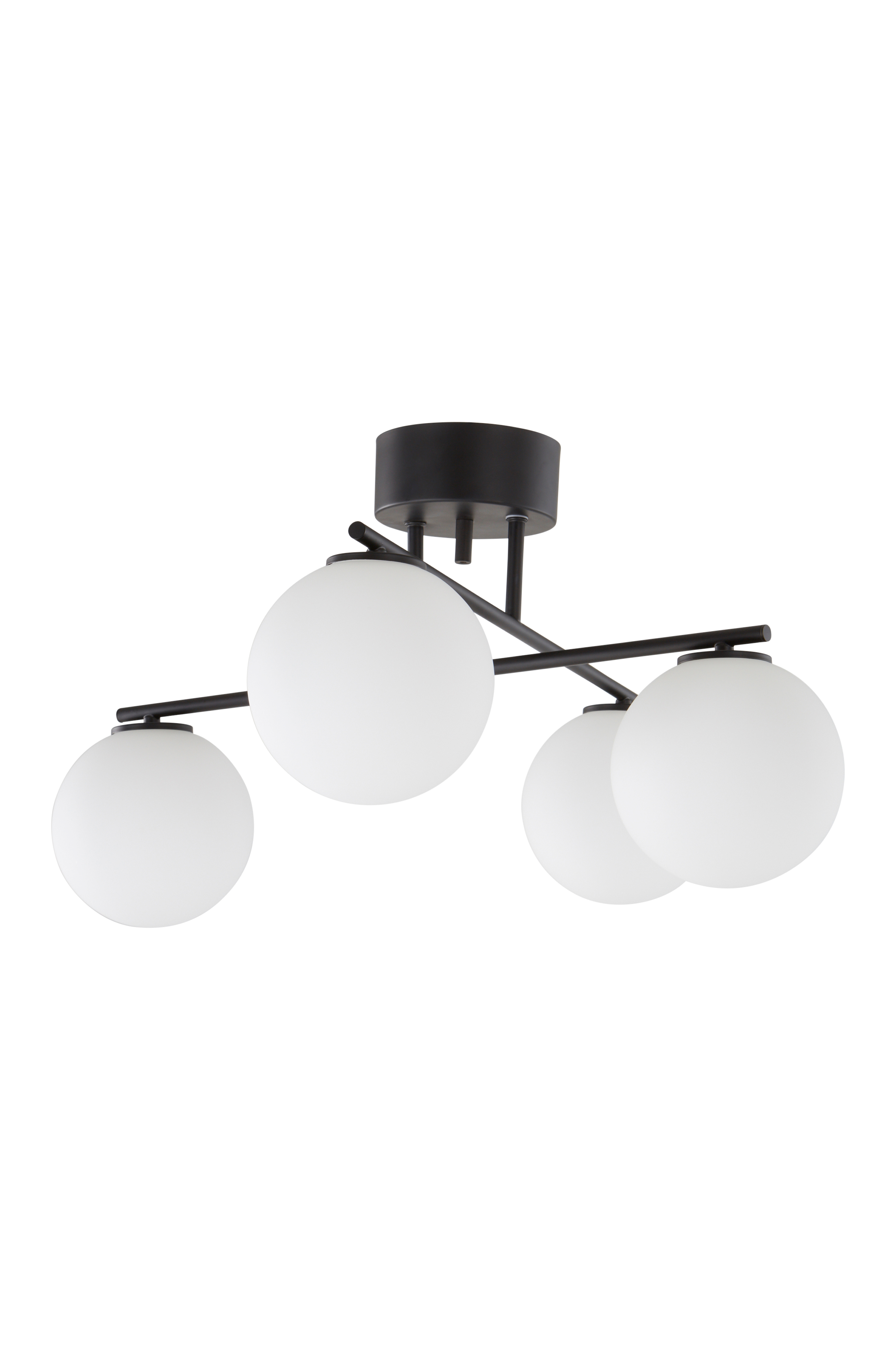 Kattovalaisin, jossa metallikiinnike ja neljä valopistettä, joissa valkoiset opaalilasikuvut. Kaunis kiinnike tekee valaisimesta koreilemattoman tyylikkään ja elegantin. Metallinen kattokuppi ja ripustuskoukku. Valaisin on maadoitettu, luokka 1. EU-sääntöjen vuoksi tietyissä maissa vaaditaan erillinen kattopistoke. Kattopistokkeen tulee olla maadoitettu (luokka 1), ja se ostetaan erikseen.