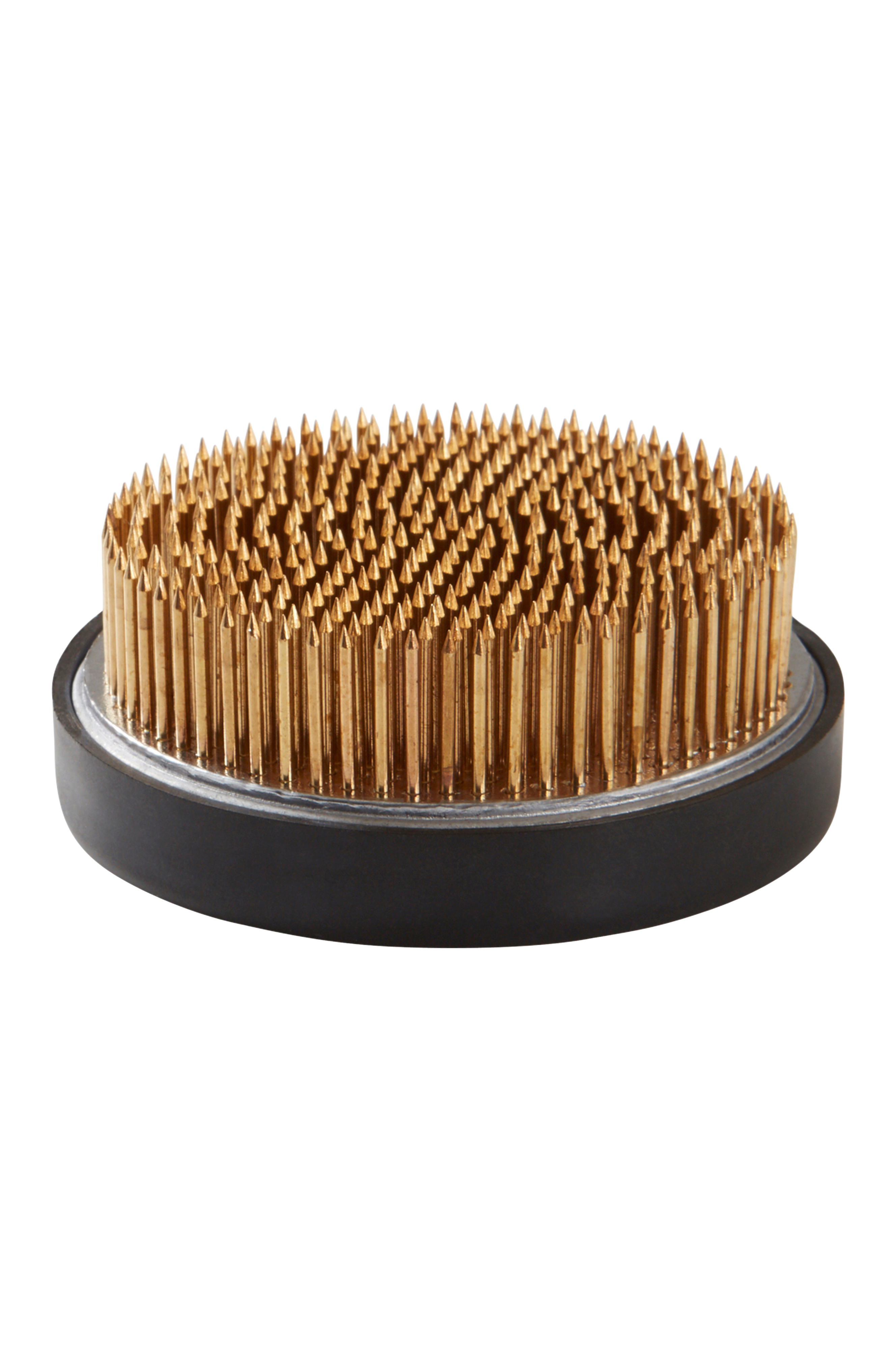 Kukkasiili, jossa painava metallipohja, kumireuna ja messinkiset piikit. Kukkasiiliin voit tehdä kauniita kukka-asetelmia leikkokukista tai kuivakukista. Sinun ei tarvitse käyttää kertakäyttöisiä materiaaleja, FIORE-kukkasiiliä voit käyttää yhä uudelleen ja uudelleen. Sijoita kukkasiili maljakon, ruukun tai vadin pohjalle. Asettele kukat teräviin piikkeihin haluamallasi tavalla. Tuoreet kukat tarvitsevat vettä, kuivakukat eivät. FIORE-kukkasiiliä voidaan käyttää sekä veden kanssa että ilman. HUOM. Kumi voi kulua ajan myötä.