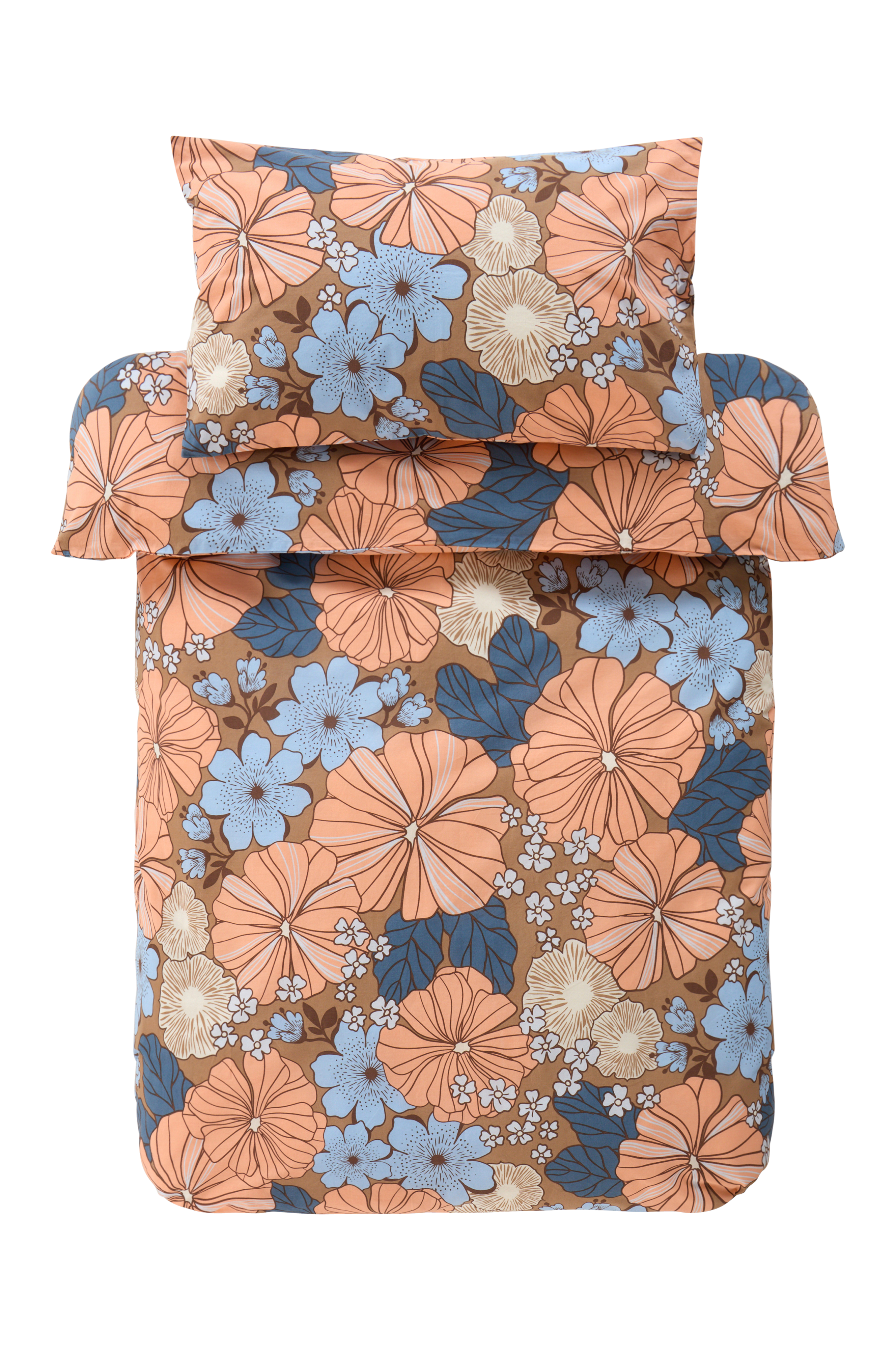 Kaksiosainen pussilakanasetti, jossa on pussilakana ja tyynyliina, hienokudottua, tiukasti kudottua puuvillaa. Kankaassa on kaunis kukkakuvio, joka on painettu kauniilla värivalikoimalla. Se on myös entsyymipesty, mikä antaa sille miellyttävän pehmeyden ja hieman kuluneen tuntuman. Setti sopii pinnasänkyyn.