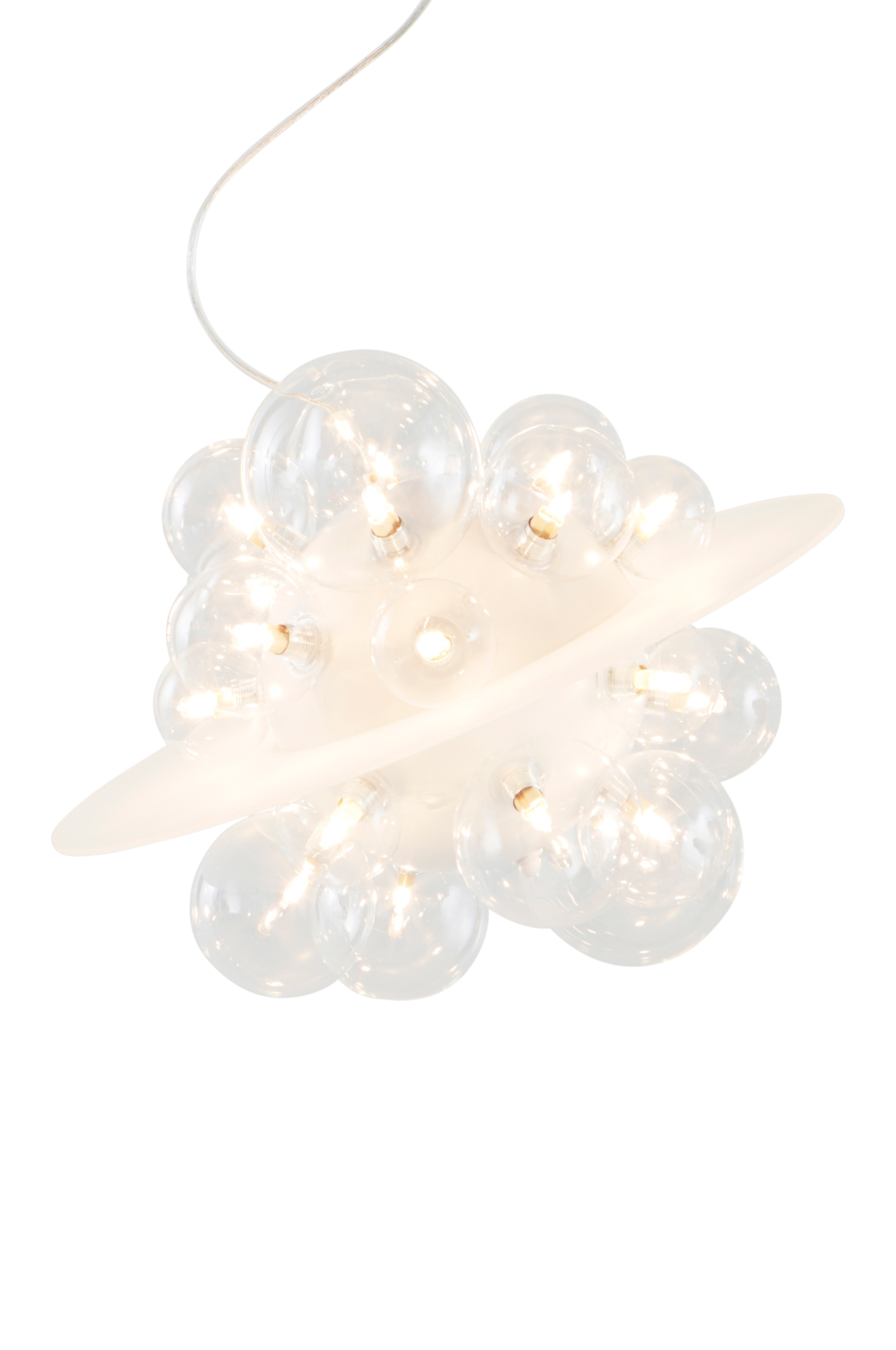 Kattovalaisin rautaa ja akryylilasia, 22 lasikupua valkoista ja kirkasta lasia. Näyttävä valaisin vie ajatukset maailmankaikkeuteen ja saattaa olla Saturnuksen inspiroima. 22 lamppua luo miellyttävän valon. Valaisin ripustetaan vaijerista, mikä luo leijuvan vaikutelman. Valaisin on maadoittamaton, luokka 2. EU-sääntöjen vuoksi tietyissä maissa vaaditaan erillinen kattopistoke. Kattopistokkeen tulee olla maadoittamaton (luokka 2), ja se ostetaan erikseen.