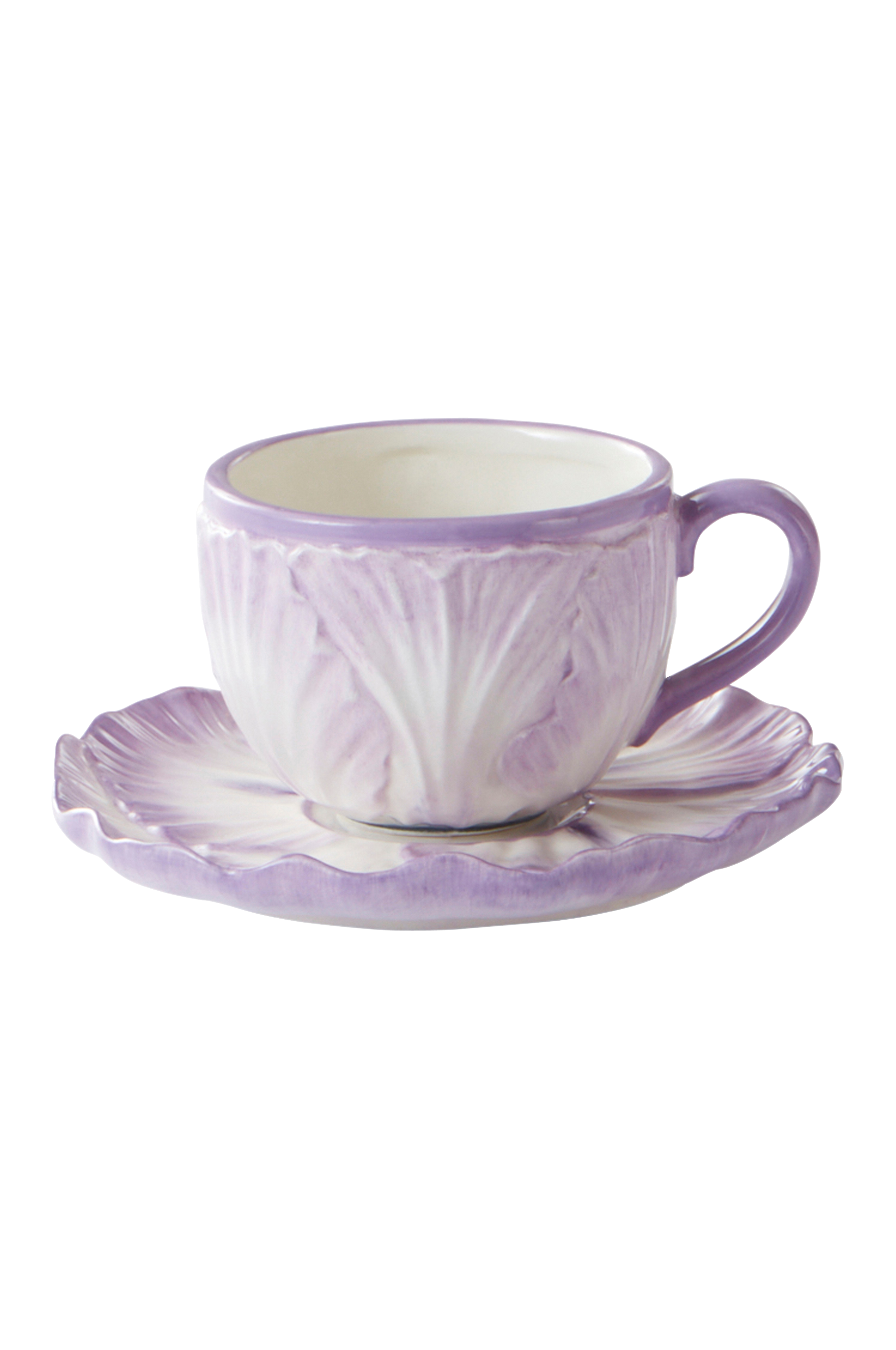 Pakkaus sisältää yhden kupin ja aluslautasen. Setti on valmistettu käsin dolomiittiposliinista, ja sen väri ja muotoilu tuovat mieleen orvokinkukan. Kiiltävä lasite on käsinmaalattu, ja hienovarainen käsityö tekee jokaisesta astiasta yksilöllisen. Kesäiset kupit aluslautasineen tuovat kahvikattaukseen viehättävää ilmettä.