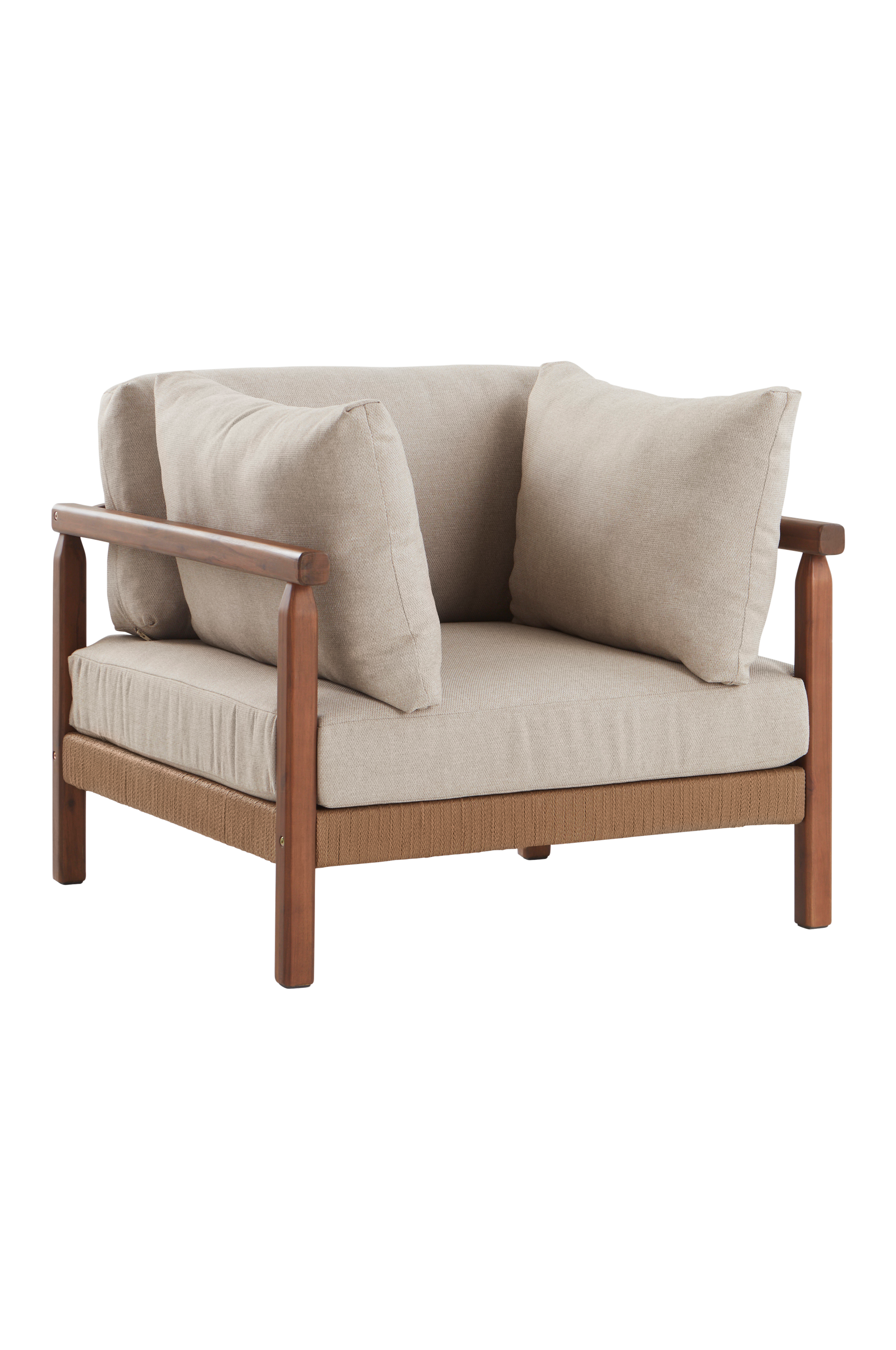 Massiivisesta akaasiapuusta valmistettu puutarha-oleskelutuoli FONTHILL säteilee luonnollista charmia ja vankkaa eleganssia. Runko, jota ympäröi sirosti kääritty köysi, tuo puutarhaasi tai parvekkeellesi ripauksen käsityöläismaista tunnelmaa. Muunna ulkotilasi mukavuuden ja tyylin keidas FONTHILLin ainutlaatuisen muotoilun avulla. Ihanteellinen rauhallisiin päiviin auringon alla.