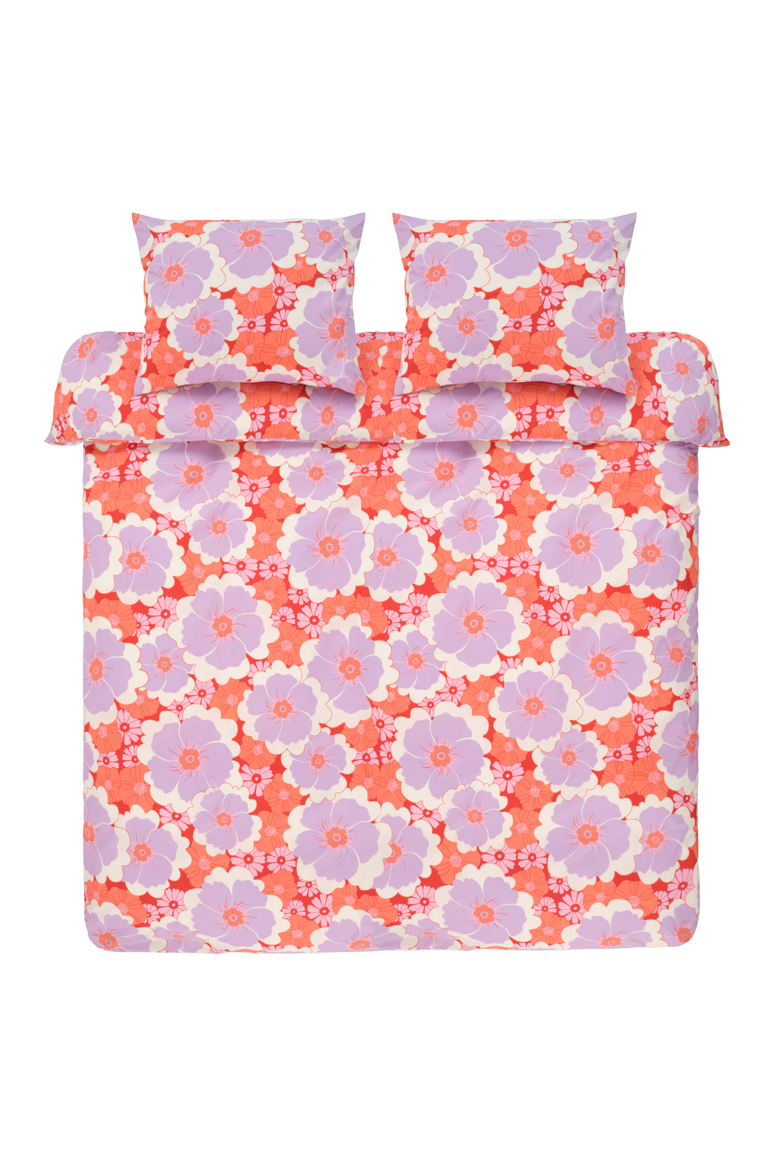 FRIDA-parivuodesarjassa on Maria Carlbergin suunnittelema retrohenkinen kukkakuvio, joka tuo makuuhuoneeseesi eloisuutta. Tämä setti on valmistettu luonnonmukaisesta perkaalipuuvillasta, ja se sisältää leveän pussilakanan ja tyynyliinat, jotka on suunniteltu käsiaukoilla ja piilonapeilla mukavuuden ja tyylin vuoksi.