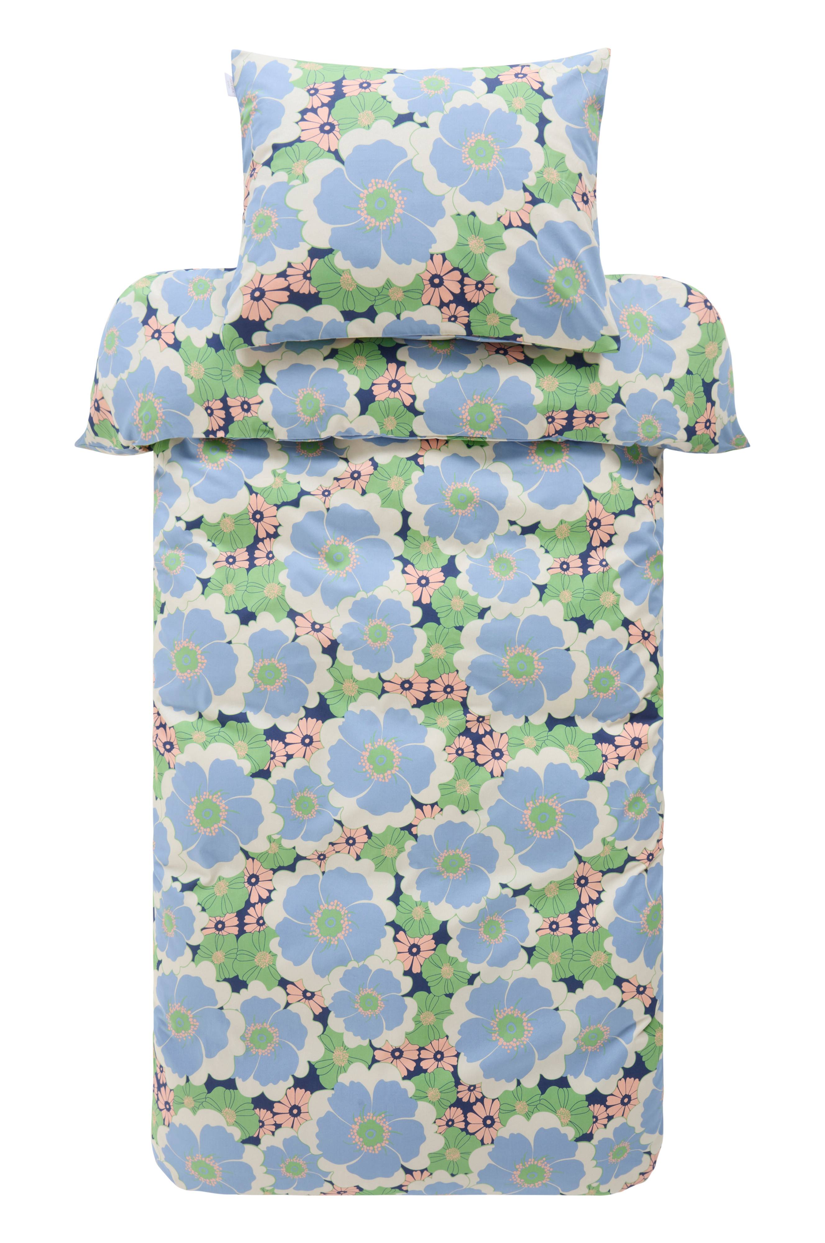 FRIDA-sängyn sängynsetti piristää makuuhuonetta Maria Carlbergin retro-kukkakuvioinnilla. Se on valmistettu raikkaasta puuvillaperkaalista, joka takaa pehmeän ja hengittävän tunteen levollisen unen takaamiseksi. Tähän settiin kuuluu pussilakana ja tyynyliina, joissa on kätevät kädensijat ja piilotetut painonapit.