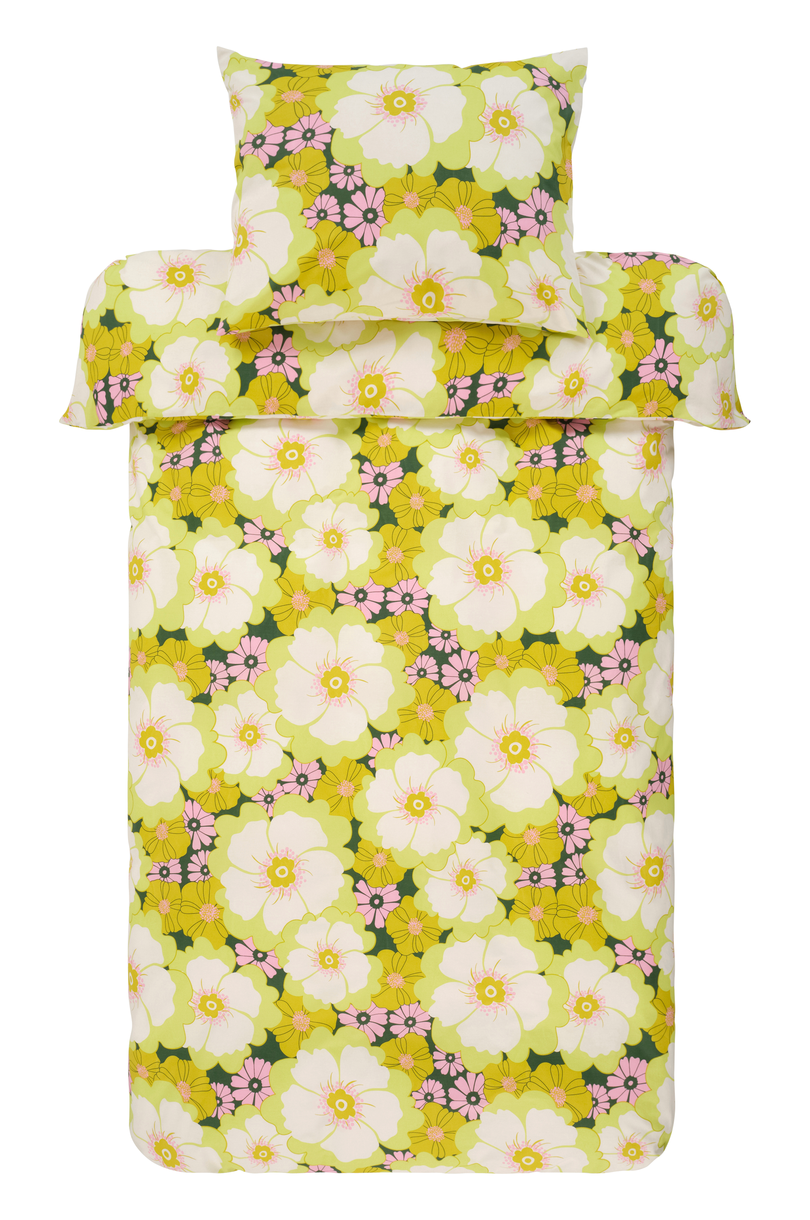 FRIDA-sängyn sängynsetti piristää makuuhuonetta Maria Carlbergin retro-kukkakuvioinnilla. Se on valmistettu raikkaasta puuvillaperkaalista, joka takaa pehmeän ja hengittävän tunteen levollisen unen takaamiseksi. Tähän settiin kuuluu pussilakana ja tyynyliina, joissa on kätevät kädensijat ja piilotetut painonapit.