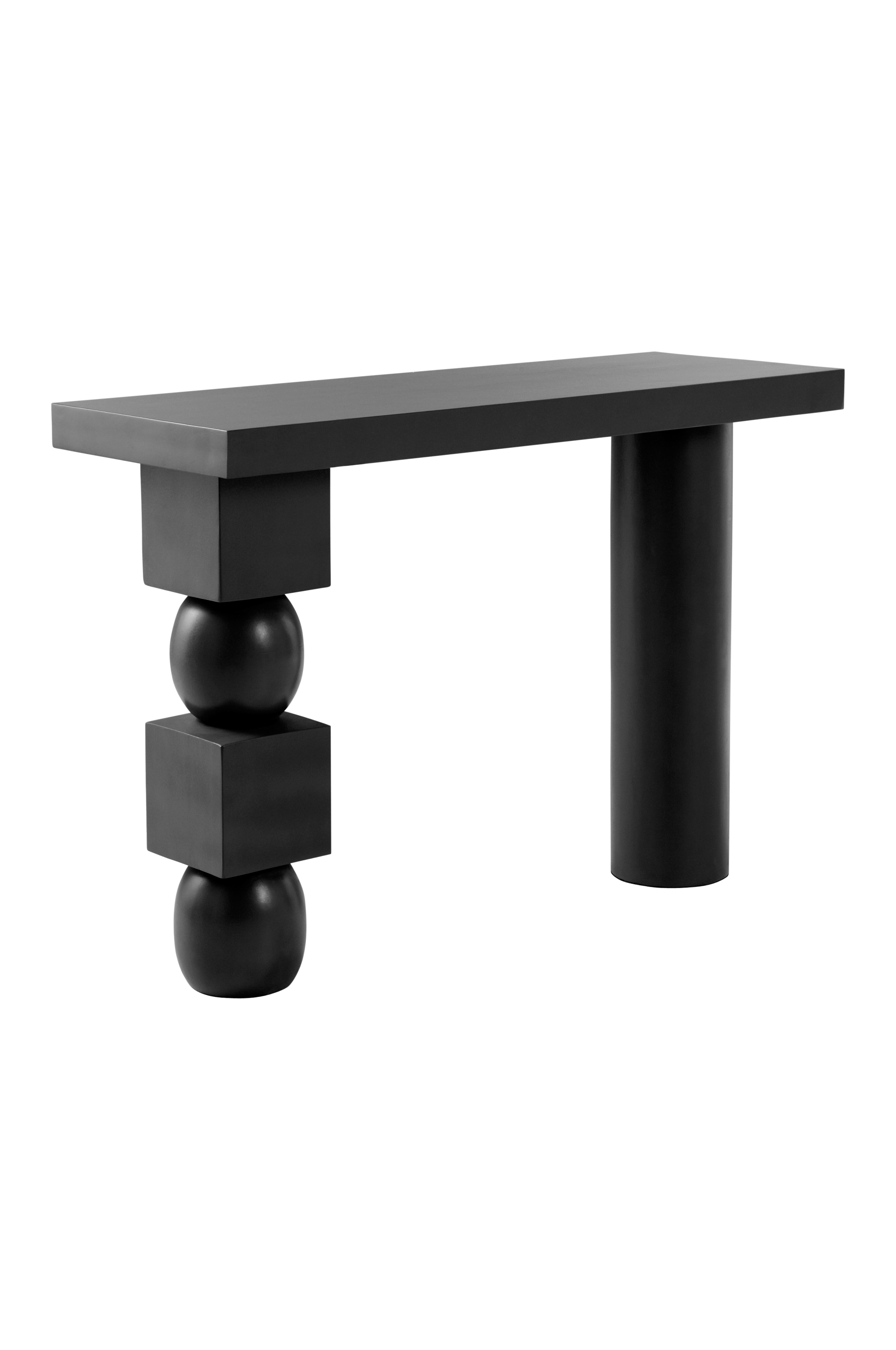 Massiivisesta mangopuusta valmistettu kirjoituspöytä, joka on maalattu mustalla vesipohjaisella maalilla. GEO-pöydässä on miellyttävä epäsymmetrinen muoto - yksi suora, pyöreä jalka ja toinen, pyöreistä ja nelikulmaisista elementeistä koostuva jalka. GEO on tyylikäs kotitoimistossa tai sivupöytänä. Pöytälevyn takana on kaksi metallista seinäkiinnikettä. Osittain koottava. Kokoamisohje mukana.