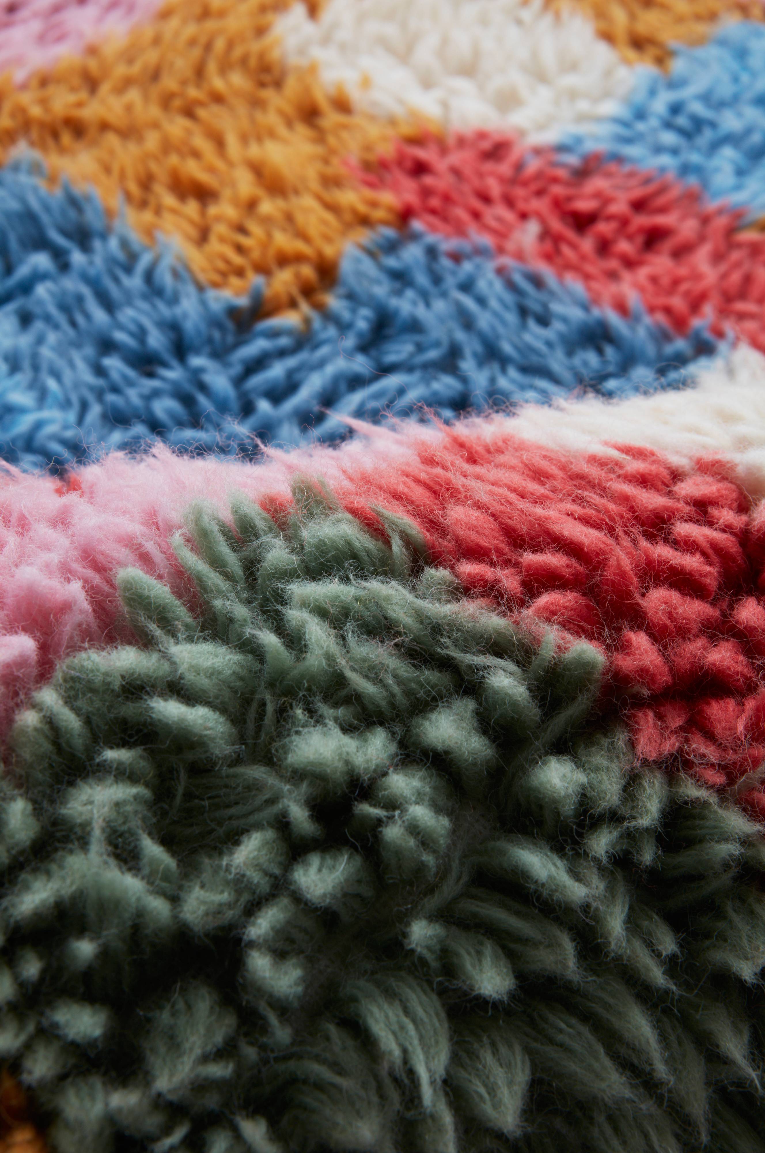 Värikäs, kirkkaan värinen ja mielikuvituksellinen käsin tuftattu villamatto. Lankavärjätystä villasta valmistettu leikattu nukka on tiivistä ja pörröistä, ja miellyttävät värit ovat harmoniset ja iloiset. Villamatot ovat luonnostaan lämpimiä ja käytännöllisiä, sillä villa hylkii likaa. Ne ovat hyviä ominaisuuksia matolle ja vaikuttavat maton valintaan. Nukan pituus 3-3,2 cm. Paksuus 3,2-3,4 cm. 3800-4000 g/m².