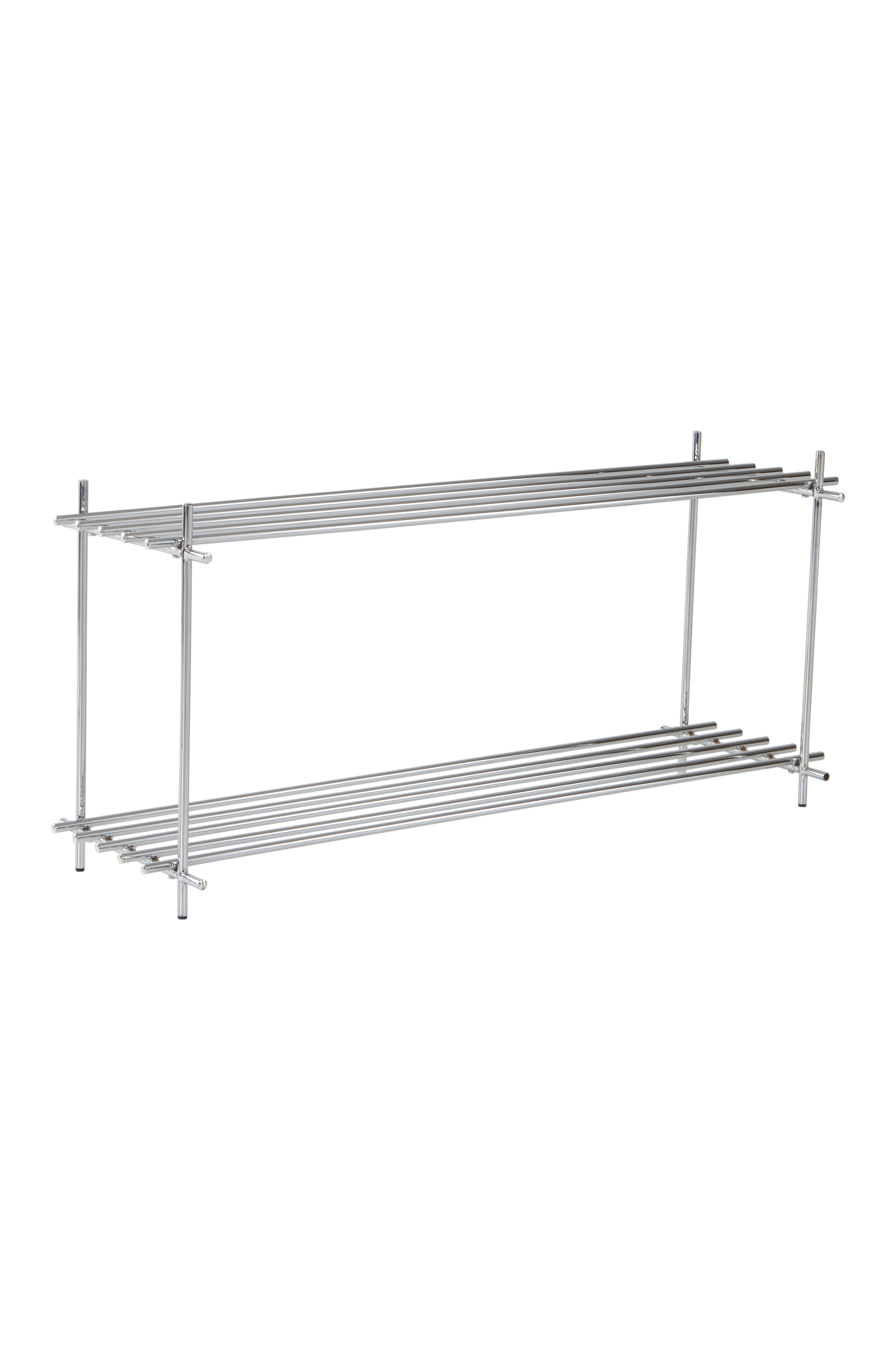 GLAZE on minimalistinen eteissarja tyylikästä säilytystä varten. Kenkähylly on valmistettu rautaputkista, joissa on krominvärinen, kiiltäväpintainen pinnoite. Kenkähyllyssä on kaksi hyllyä kengille.