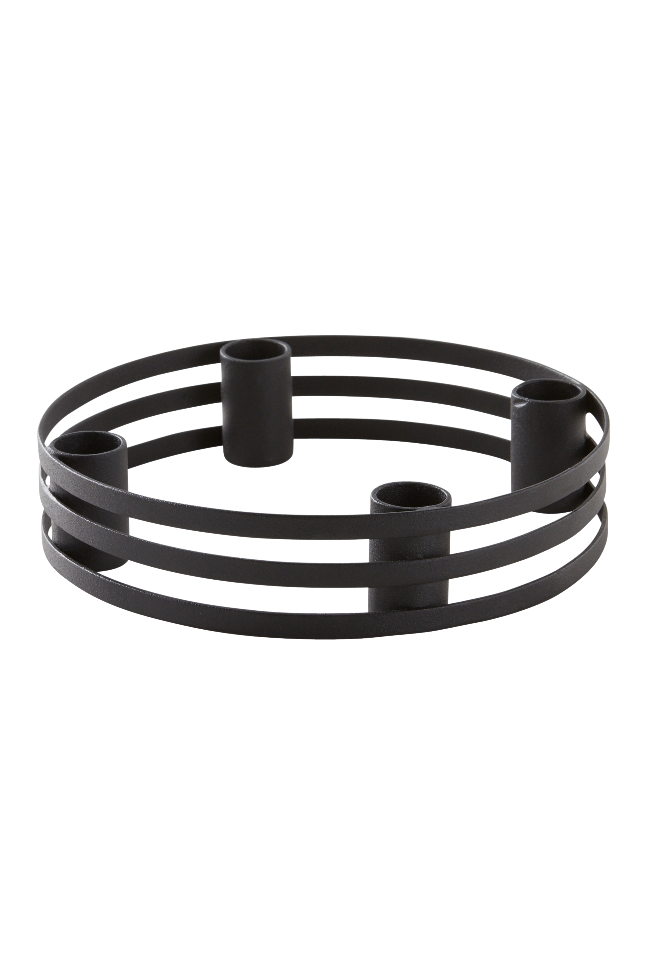 Pyöreä kynttelikkö rautaa, jossa jauhemaalattu pinta. Kynttelikössä on neljä kynttilänpidikettä. Pelkistetyn ja tyylikkään muotoilun ansiosta kynttelikköä voi käyttää koko vuoden, myös kun joulunaika on ohi. Kynttilät eivät sisälly toimitukseen.