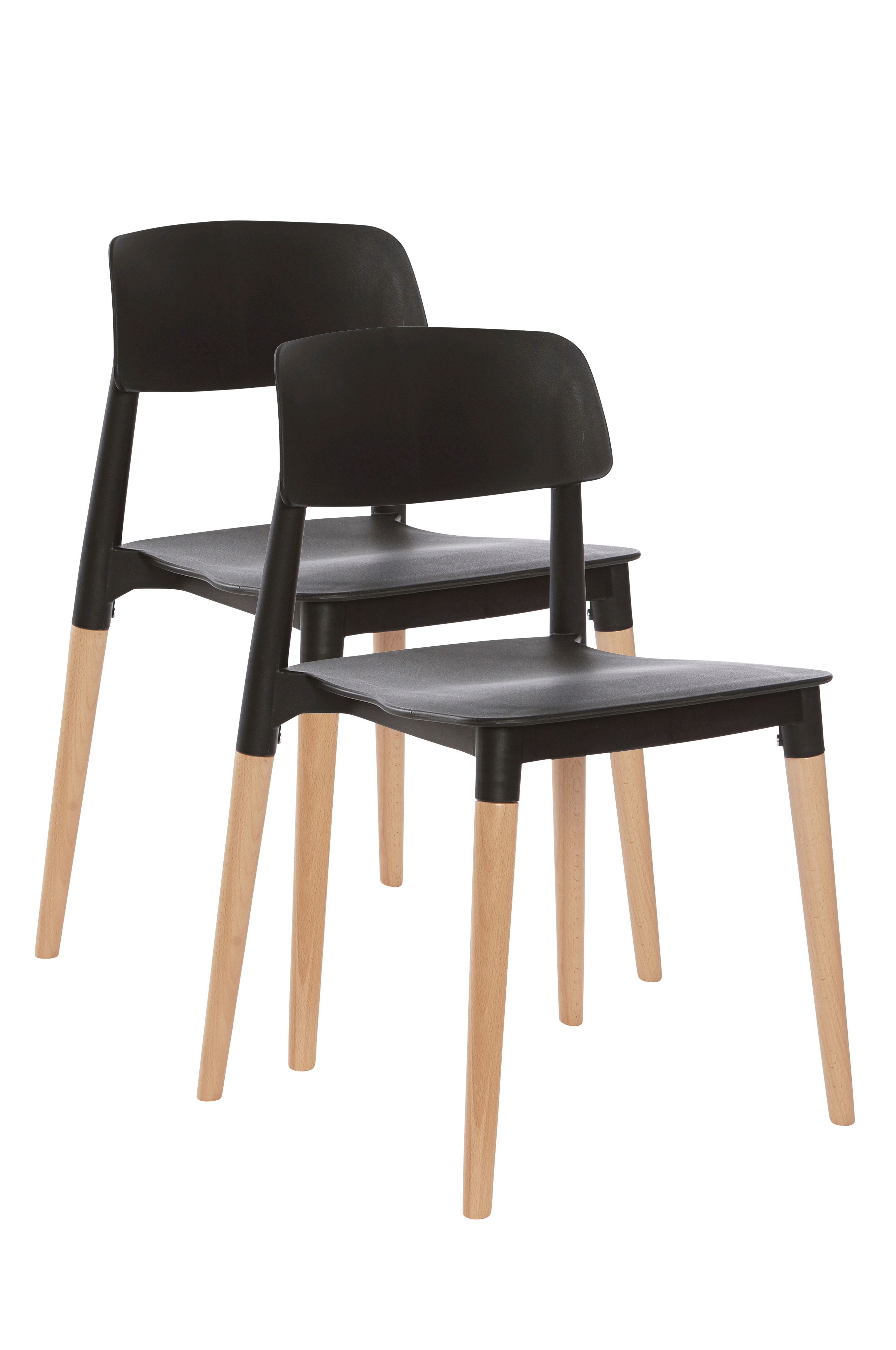 Kuvaus: Tuolit, joiden istuin muotoonvalettua polypropeenia ja jalat pyökkiä. Pinottavat. Osittain koottavat.