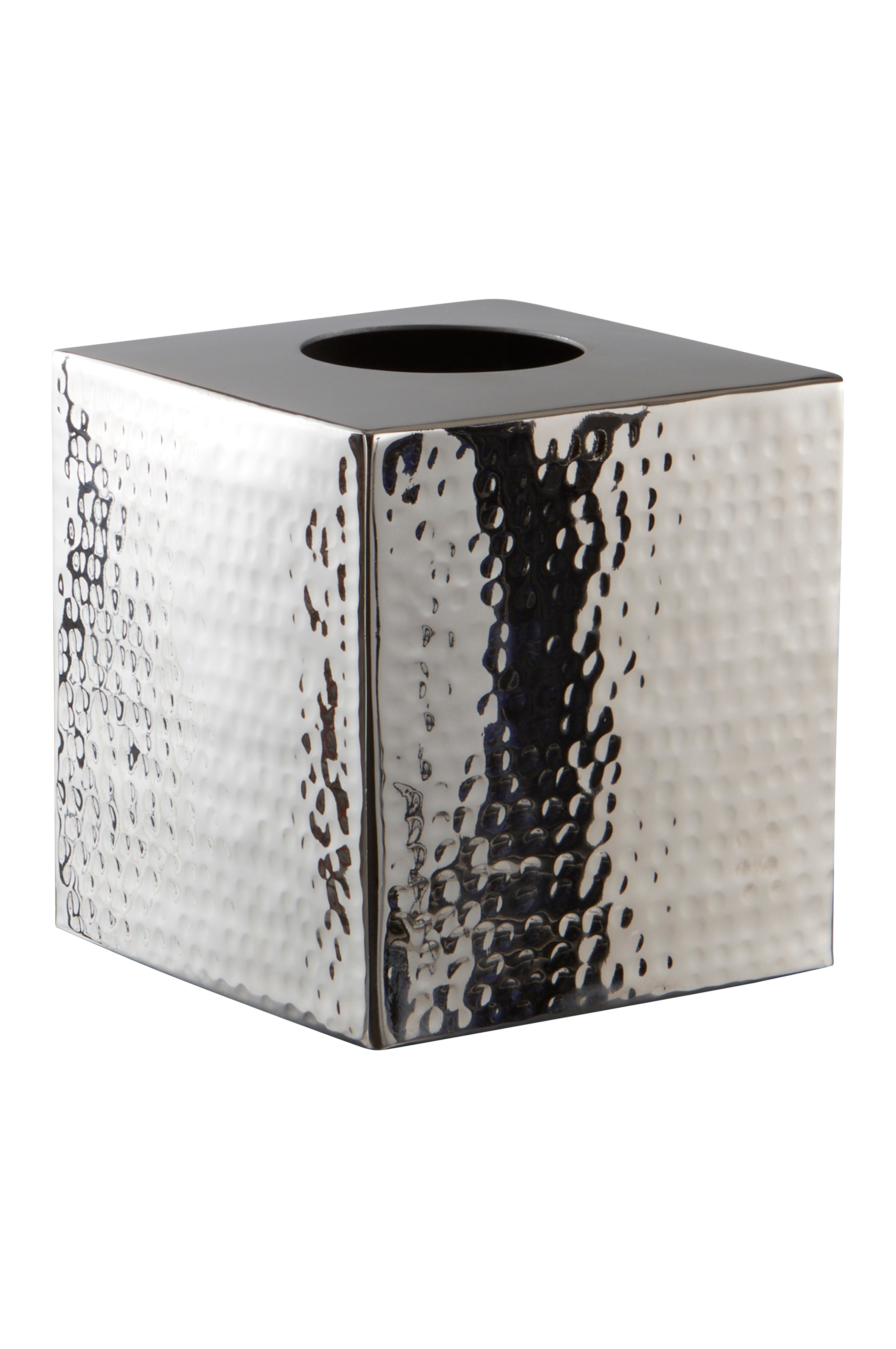 Nelikulmainen kasvopaperilaatikko ruostumatonta terästä, jossa epäsäännöllinen, taottu pinta. Laatikon yläpuoli on kiiltävä ja sileä ja siinä on pyöreä aukko, josta käsin kasvopaperit on helppo ottaa. HANNA-sarjassa on tyylikkäitä WC:n ja kylpyhuoneen tuotteita. Yhdistä useita saman sarjan tuotteita, niin saat tyylikkään ja yhtenäisen ilmeen kylpyhuoneeseen.