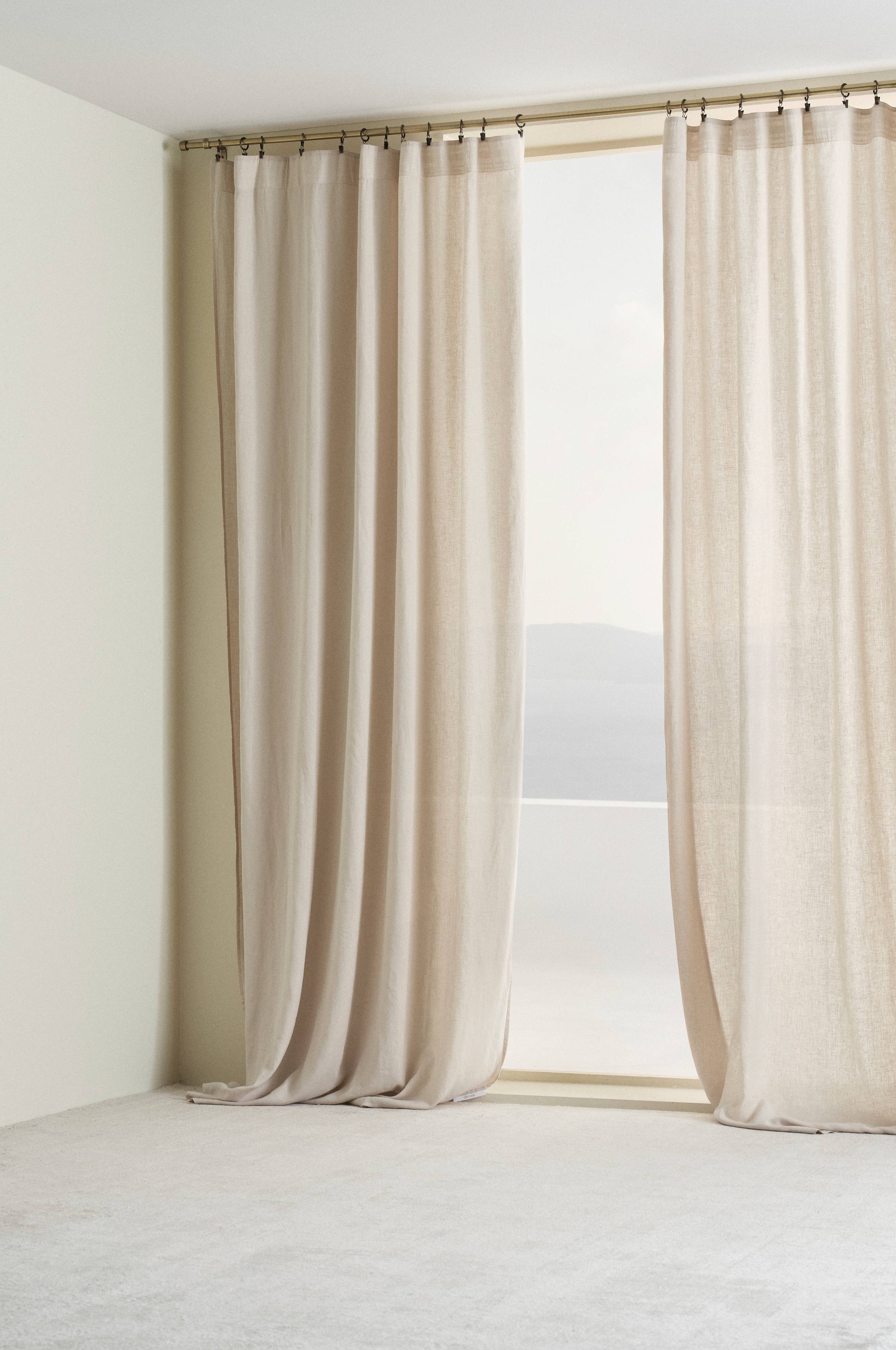 Kaksi sivuverhoa miellyttävää, pestyä materiaalia, joka laskeutuu kauniisti. Hamppu ja lyoselli on yhdistetty kankaaksi, jossa on mattapinta ja miellyttävä pellavan tuntu. Verhoissa on päälleommeltu monitoiminauha, ja ne voidaan ripustaa sormikoukkujen, kujan tai piilolenkkien avulla.