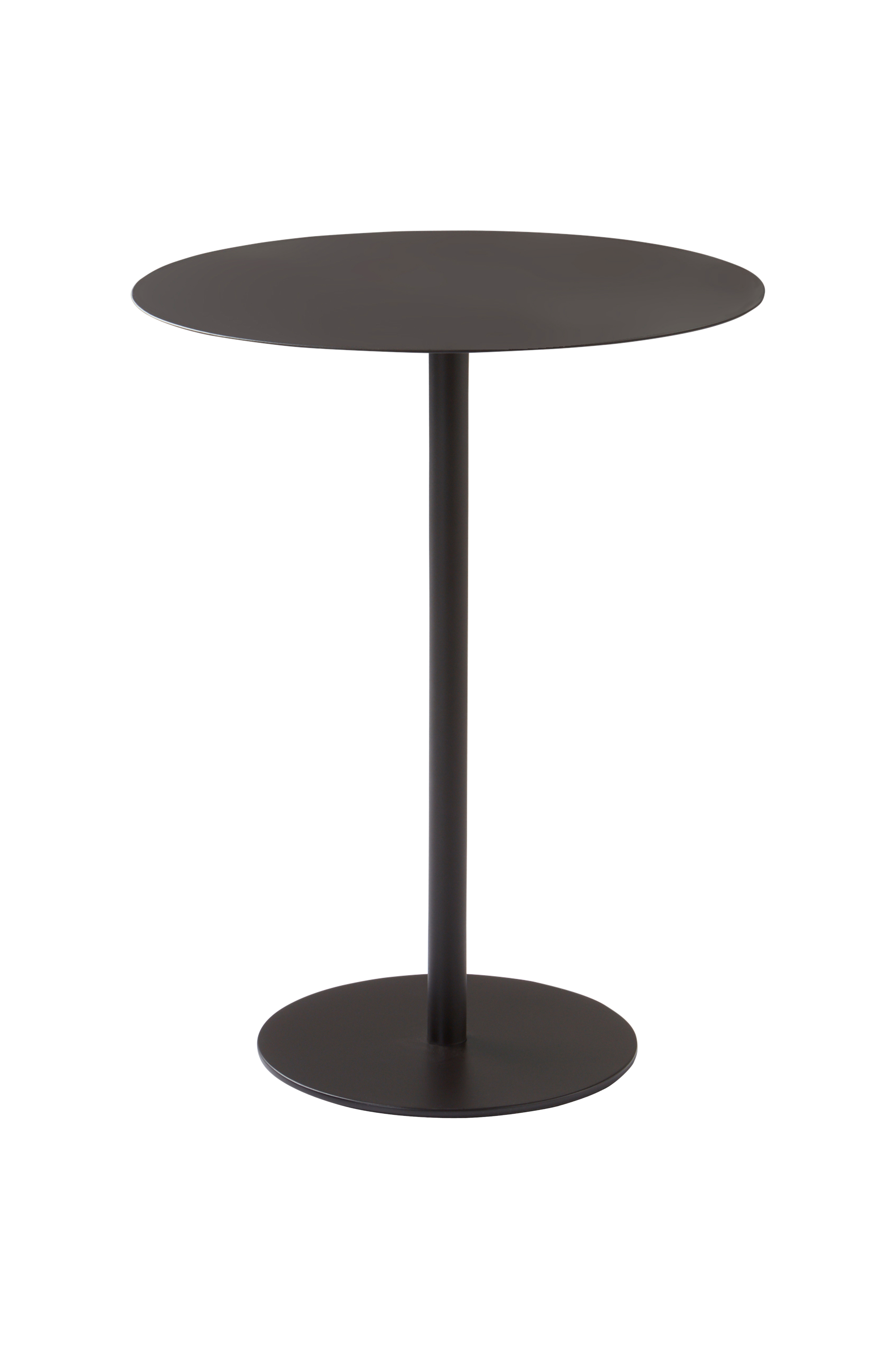 Pyöreä sivupöytä rautaa. Ohut pöytälevy ja siro pilarijalka antavat HEBY-pöydälle kapealinjaisen ilmeen. Sivupöytä on maalattu kauttaaltaan mattapintaisella jauhemaalilla.