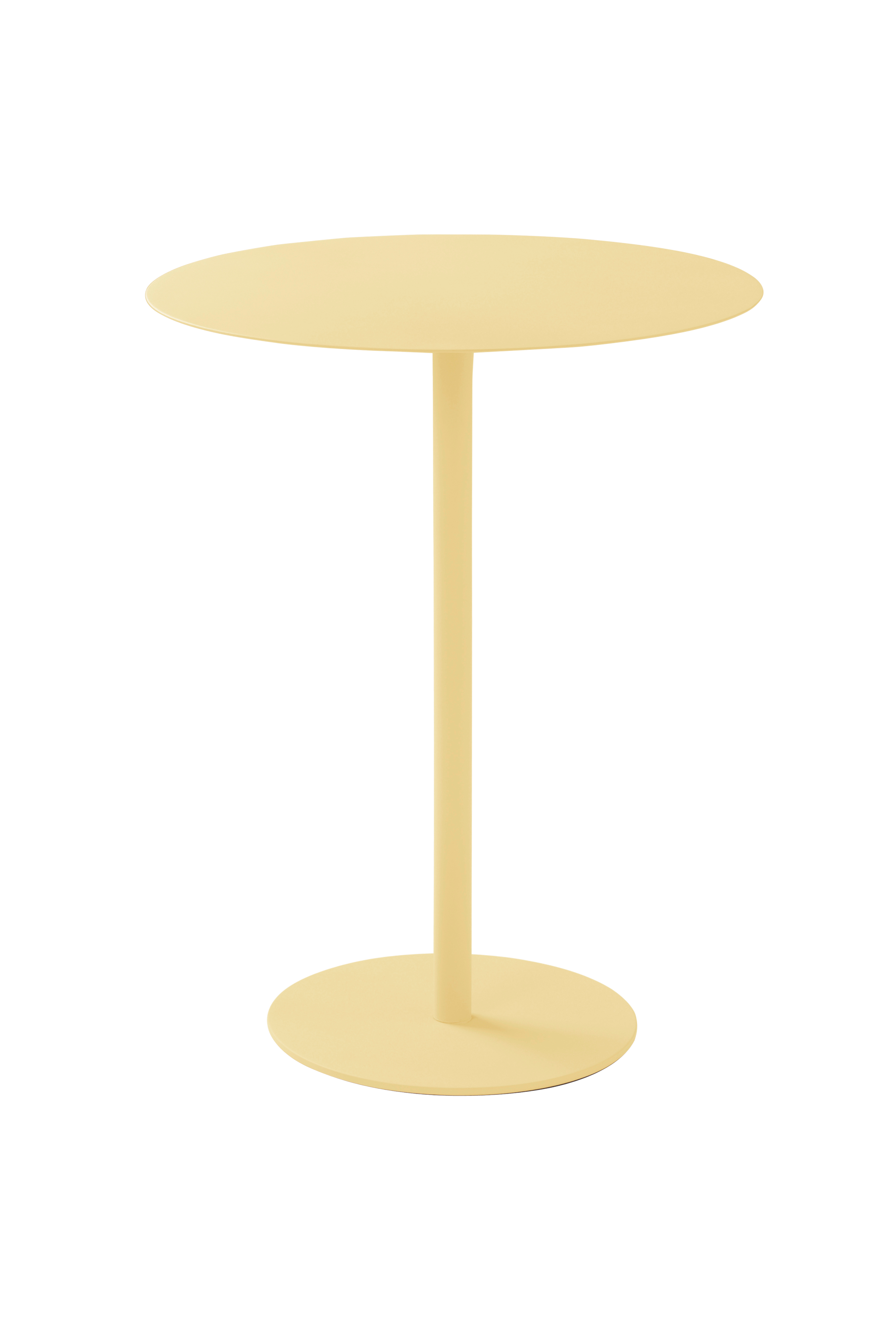Pyöreä sivupöytä rautaa. Ohut pöytälevy ja siro pilarijalka antavat HEBY-pöydälle kapealinjaisen ilmeen. Sivupöytä on maalattu kauttaaltaan mattapintaisella jauhemaalilla.