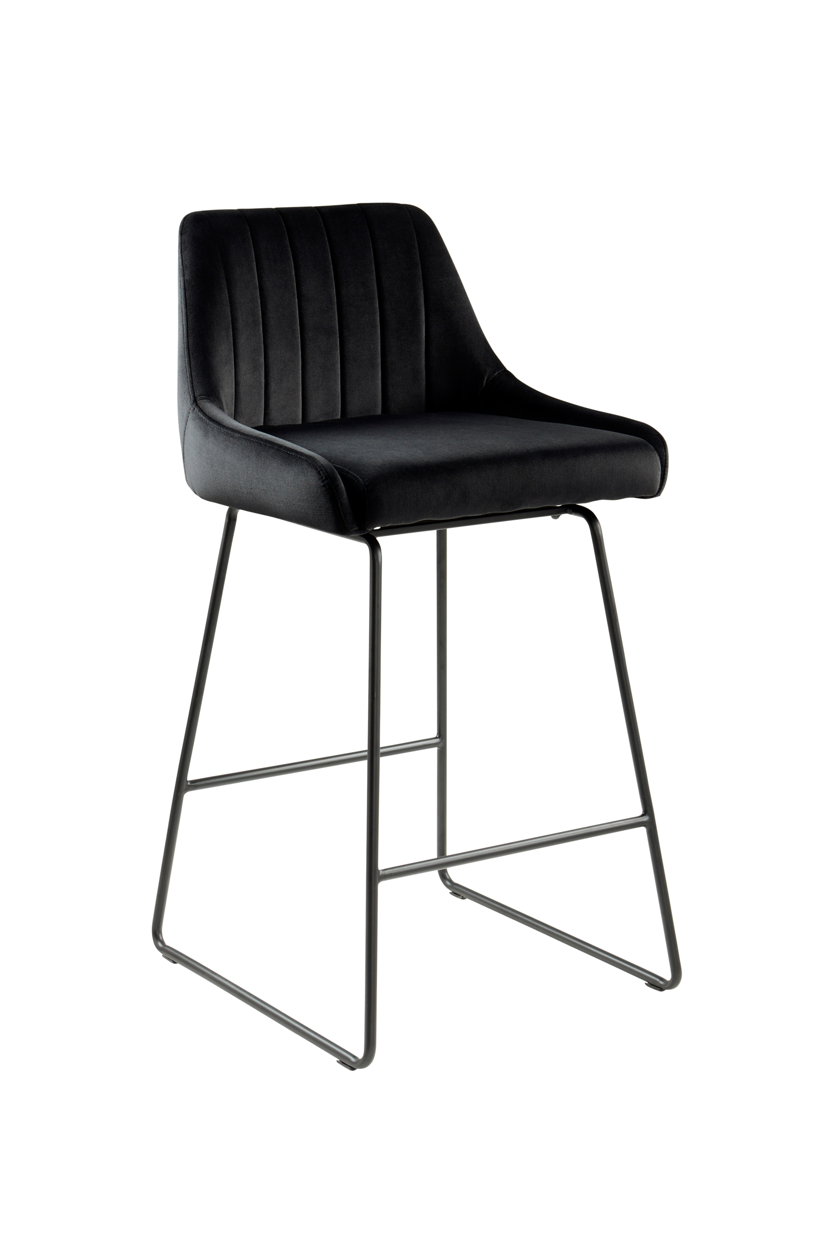 Baarituoli samettia. Pehmustetussa istuintyynyssä polyesteripäällinen. Tyylikkäästi muotoillut jalat terästä. HOLLIE on tyylikäs ja kätevä baarituoli, jossa on pehmeä vaahtomuovitäyte. Tuolissa on mukava istua. Kankaan Martindale-arvo on 28 000. Osittain koottava. Kokoamisohje mukana.
