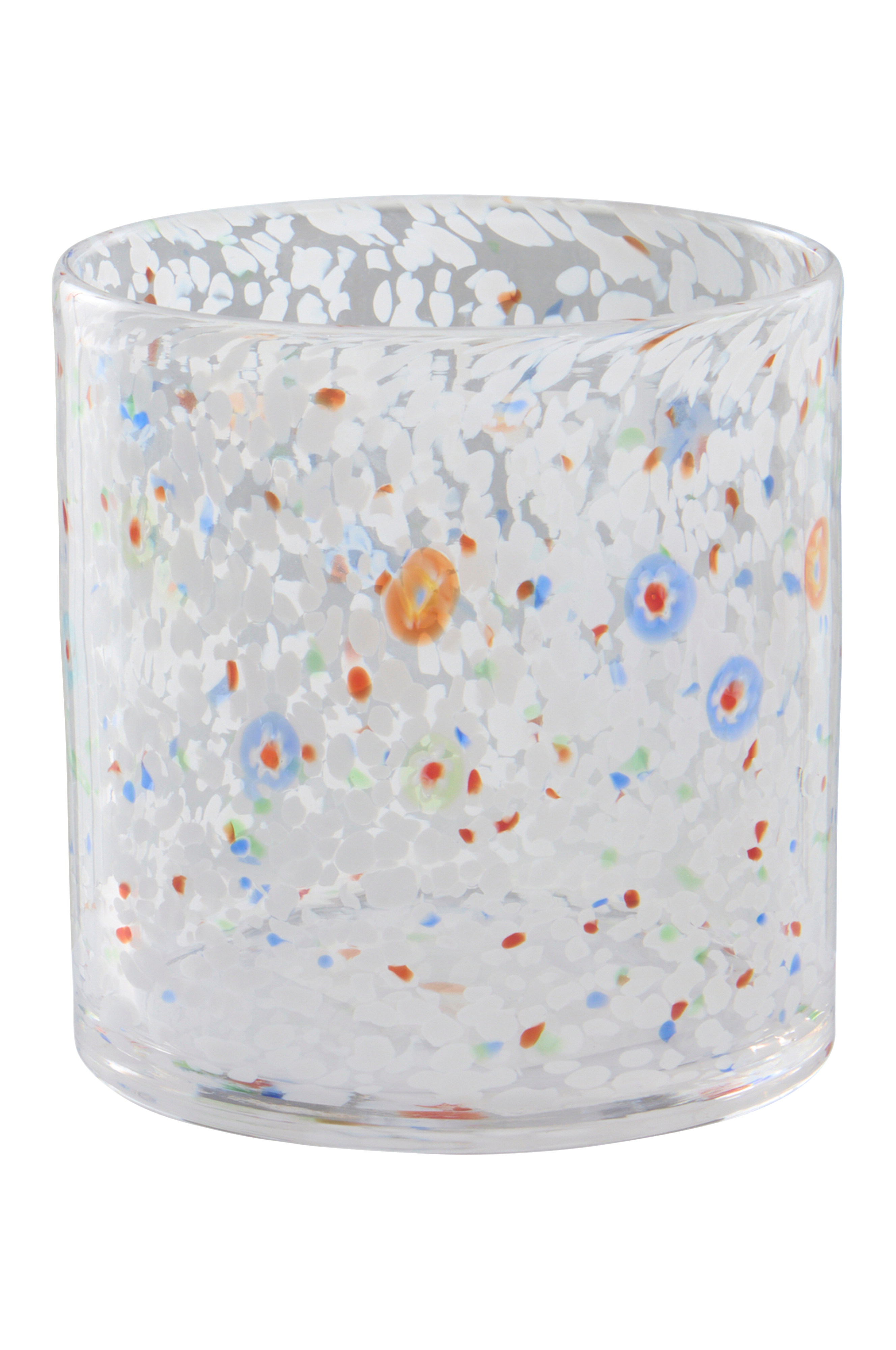 Kirkkaasta lasista valmistetussa HONEY-kynttilälyhdyssä on epäsäännöllisiä pisteitä eri väreissä. Jokainen käsintehty kappale on ainutlaatuinen ja luo viihtyisän hehkun.