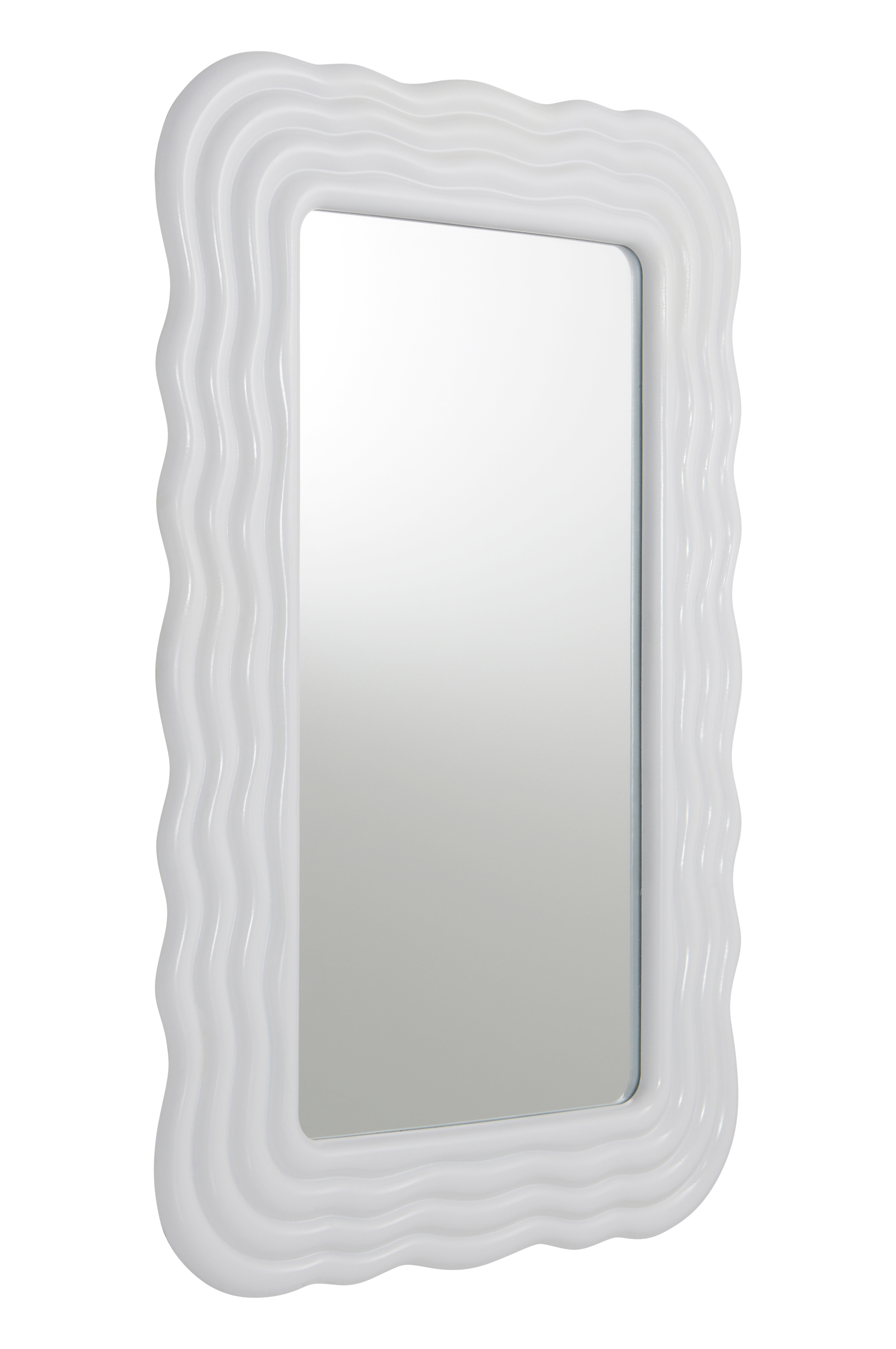 Suorakaiteenmuotoinen peili, jossa aaltoileva, leveä kehys polyresiiniä. Kehys antaa peilille nostalgiaa huokuvaa asennetta. Kiiltävä kehys korostaa retrohenkisyyttä. Peilissä on piiloripustus, ja se voidaan ripustaa sekä pystyyn että vaakasuoraan.