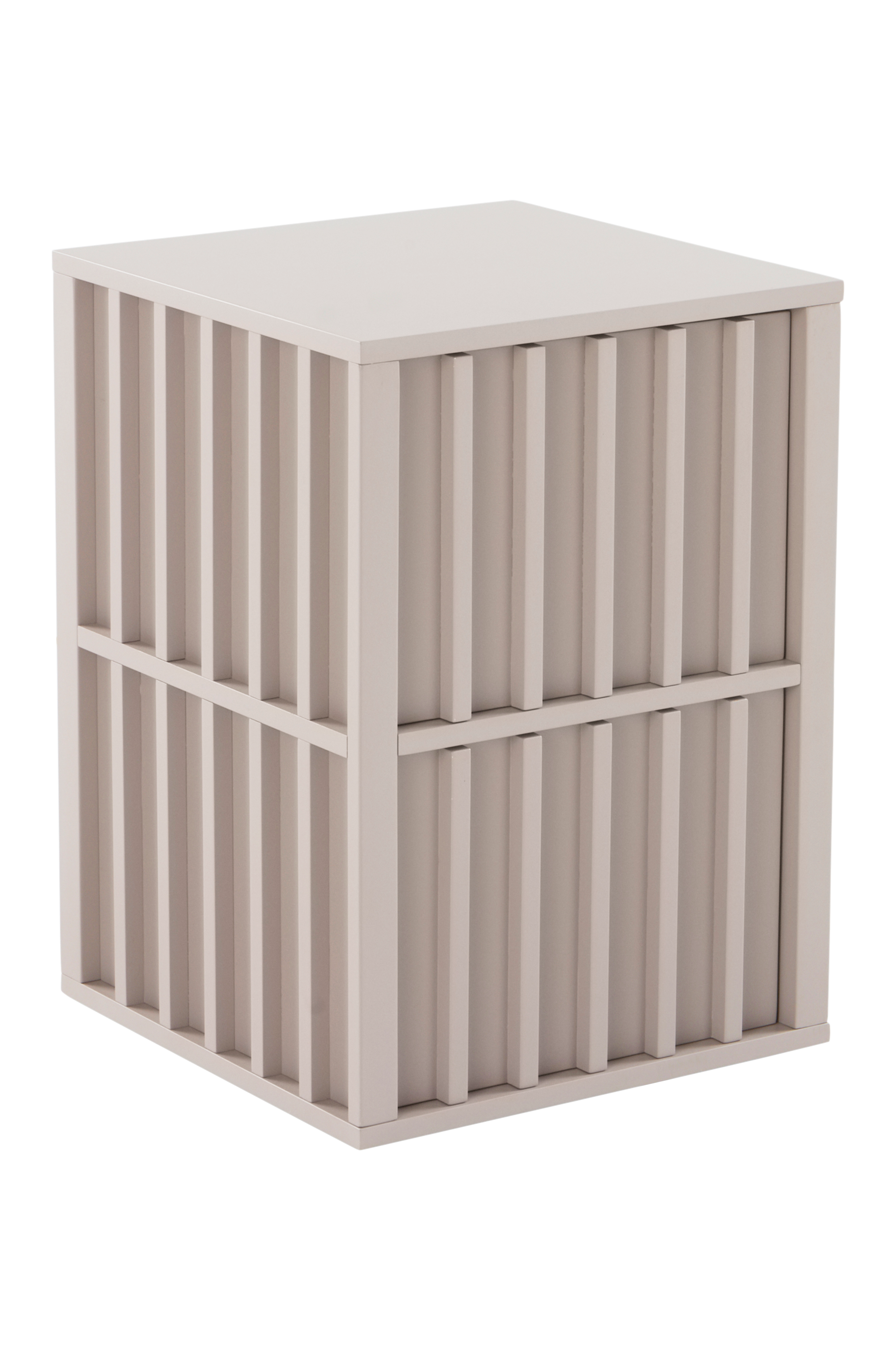 Koko: Korkeus 55 cm, pöytälevy 40x40 cm. Lokeroiden mitat: 33,7x33,7 cm, korkeus 25,2 cm.