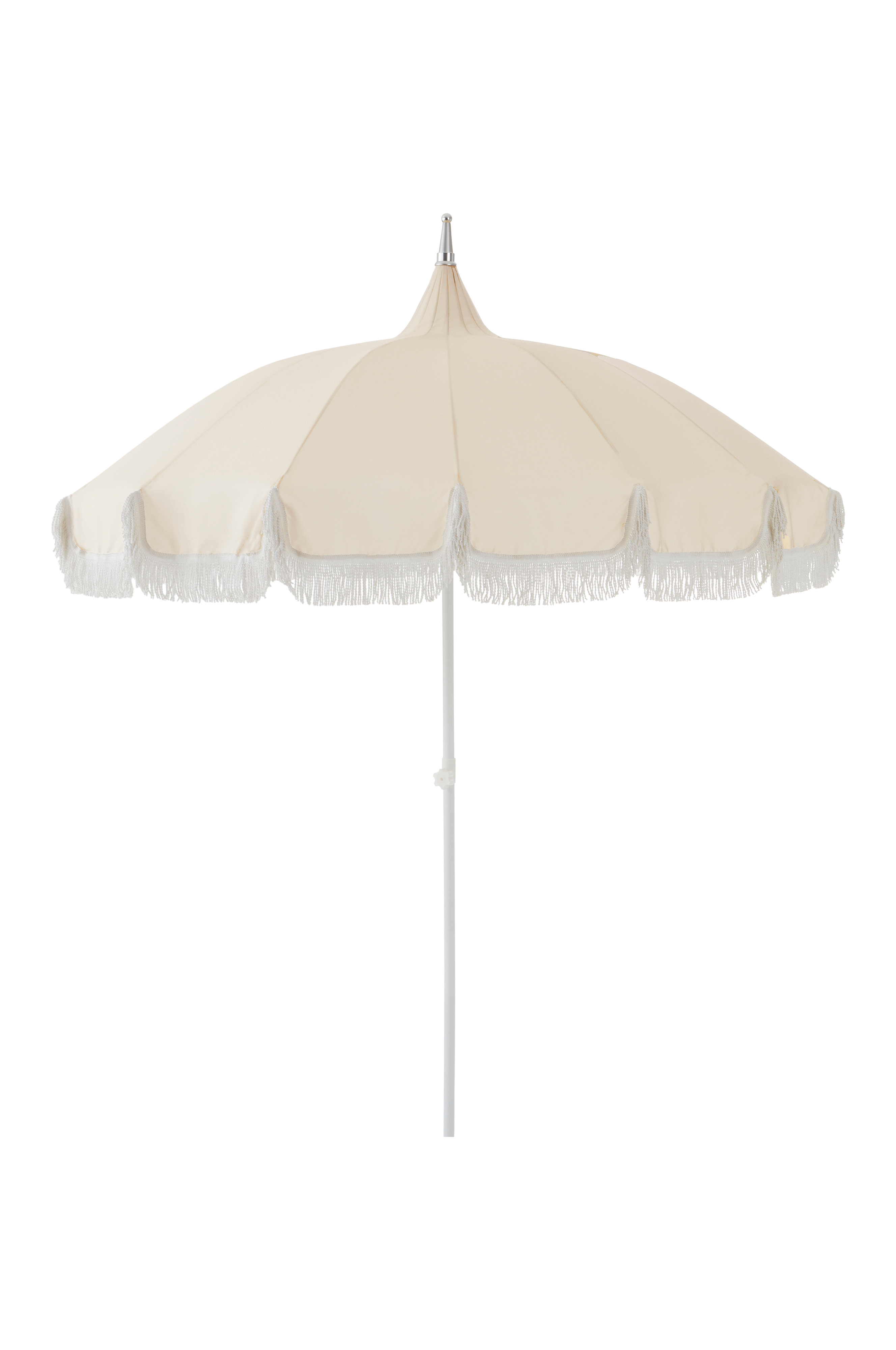 IXIA-aurinkovarjo alumiinia ja vettä hylkivä kangas ja hapsut polyesteriä. Alumiinitankoa ei voida taittaa keskeltä. Mukana maakiila aurinkovarjon kiinnittämiseksi maahan/hiekkaan. Säilytyslaukku mukana. Huomaa, että aurinkovarjonjalka ei sisälly toimitukseen, vaan ostetaan erikseen.