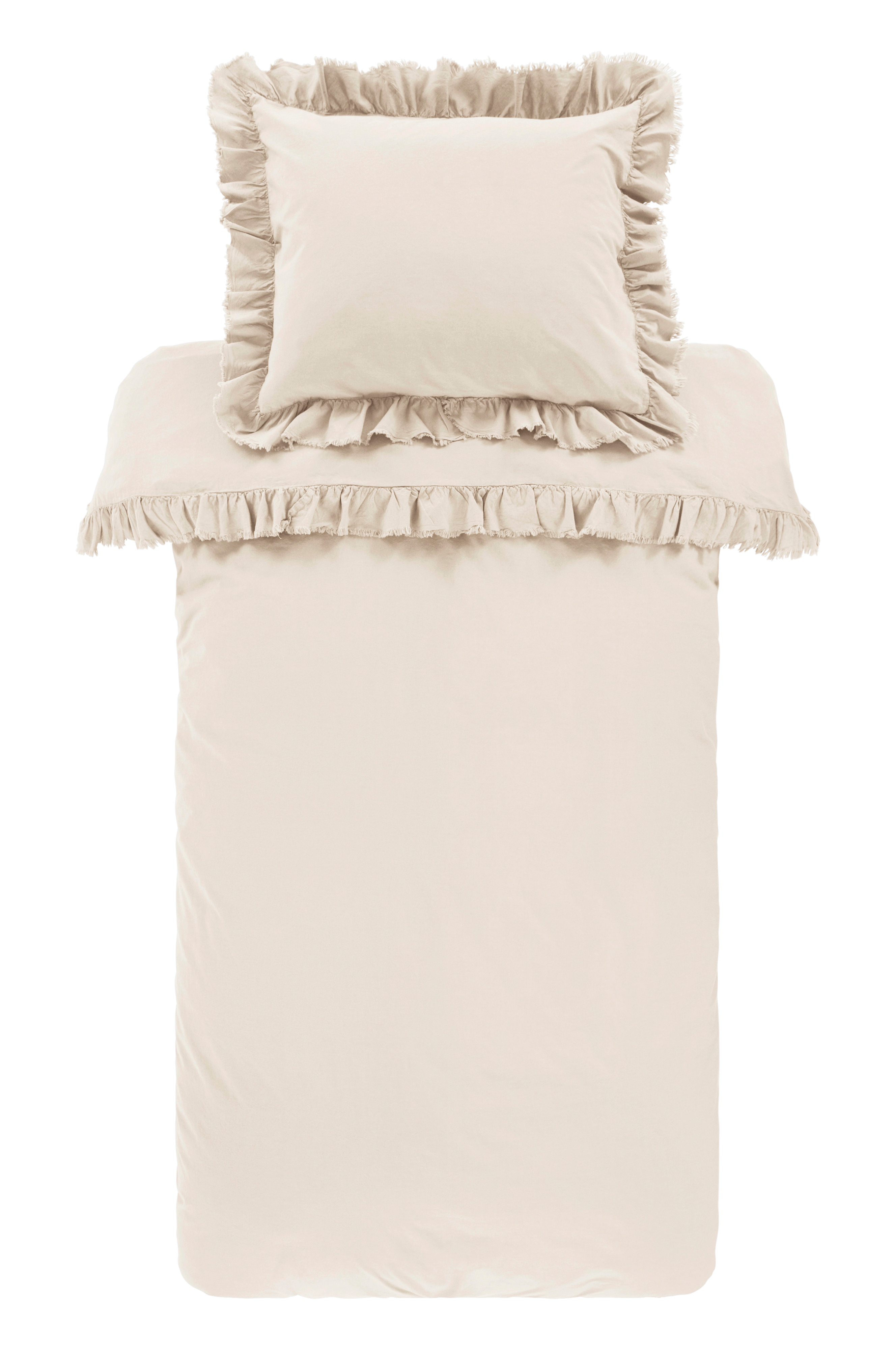 Erittäin mukavat, pehmeät tyynyliinat ja pussilakanat (ostin setin). Kaunis romanttinen tyyli röyhelöllä, joka on hieman rispaantunut. Voisin harkita ostavani lisää!