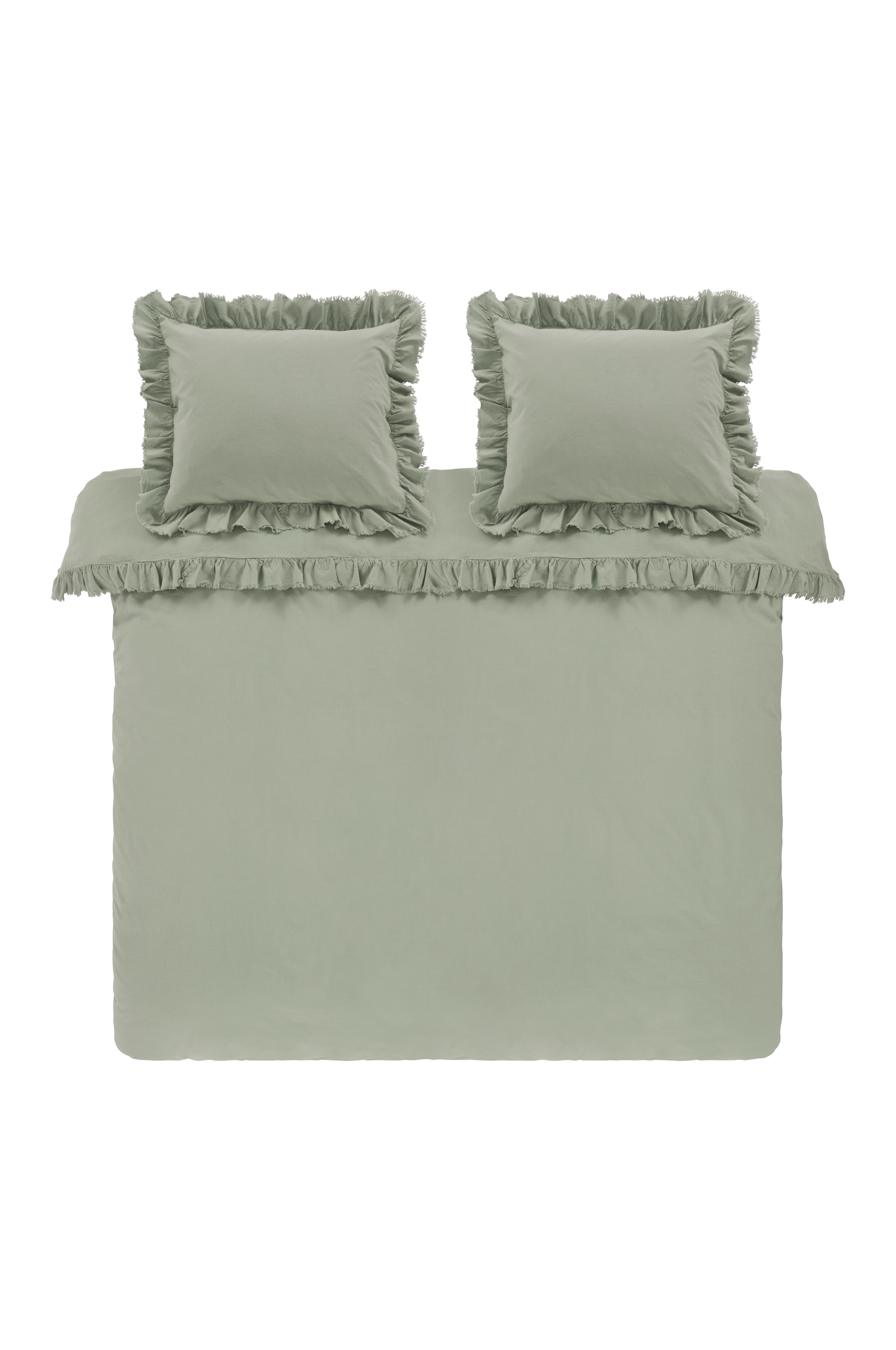 Kolmiosainen pussilakanasetti, jossa parisängyn pussilakana ja kaksi tyynyliinaa pehmeäntuntuista pestyä puuvillaa. Puuvilla on miellyttävä vuodevaatemateriaali, joka tuntuu viileältä ja pehmeältä iholla. JINN-tyynyliinassa on hieman hapsuinen röyhelöreuna ympäriinsä. Pussilakana suljetaan pienillä painonapeilla. Langantiheys 144 tc. (Langantiheys kertoo lankojen lukumäärän, thread counts, neliötuuman alalla. Mitä suurempi langantiheys, sitä laadukkaampi kangas).