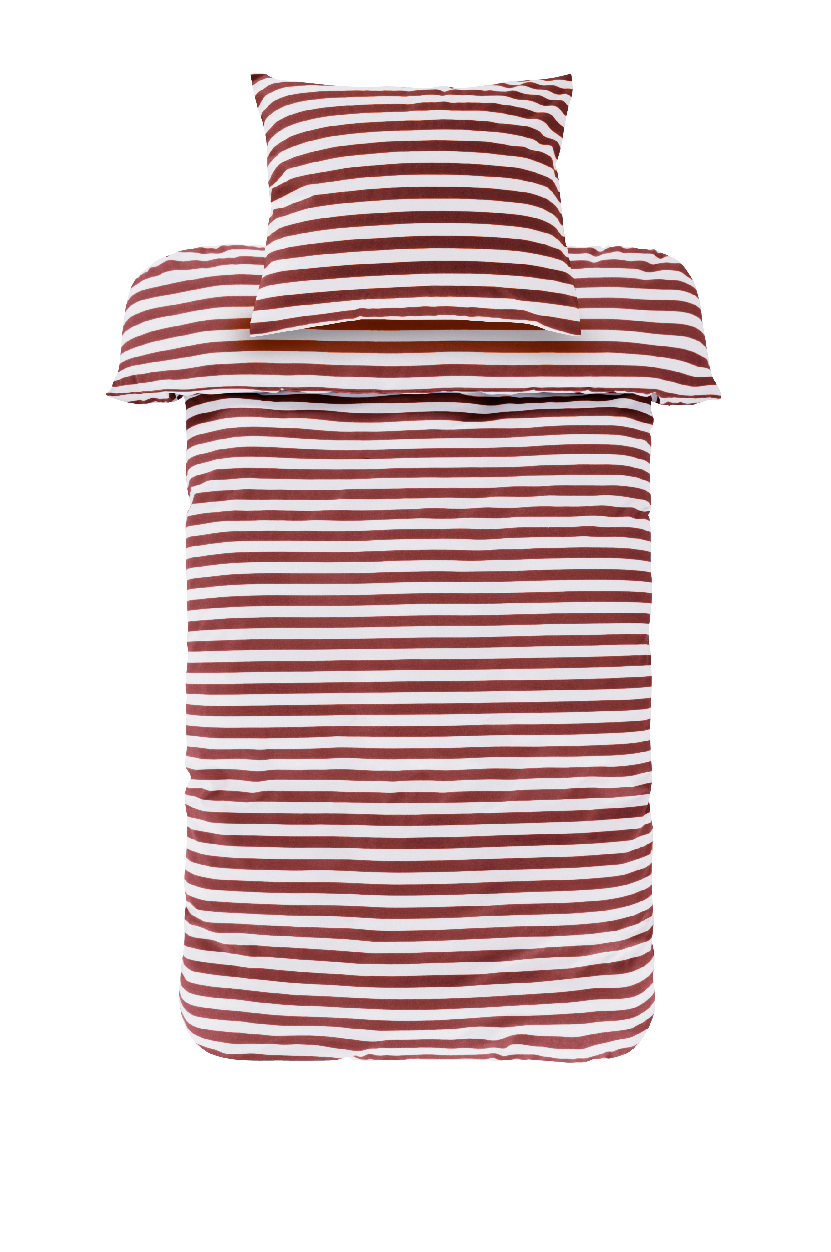 Kaksiosainen raidallinen pussilakanasetti, jossa pussilakana ja tyynyliina puuvillaa. Raikkaat kesäisen väriset poikkiraidat on painettu tyynyliinan ja pussilakanan molemmille puolille. Puuvilla on pehmeä ja miellyttävä materiaali, joka tuntuu viileältä ihoa vasten. Pussilakanan yläkulmissa on aukot, jotka helpottavat pussilakanan vetämistä peiton päälle. Langantiheys 144 tc. (Langantiheys kertoo lankojen lukumäärän/neliötuuma. Mitä suurempi langantiheys, sitä laadukkaampi materiaali. Poikkeuksena pellava, joka kudotaan usein hieman harvemmaksi halutun tunnun saavuttamiseksi.)
