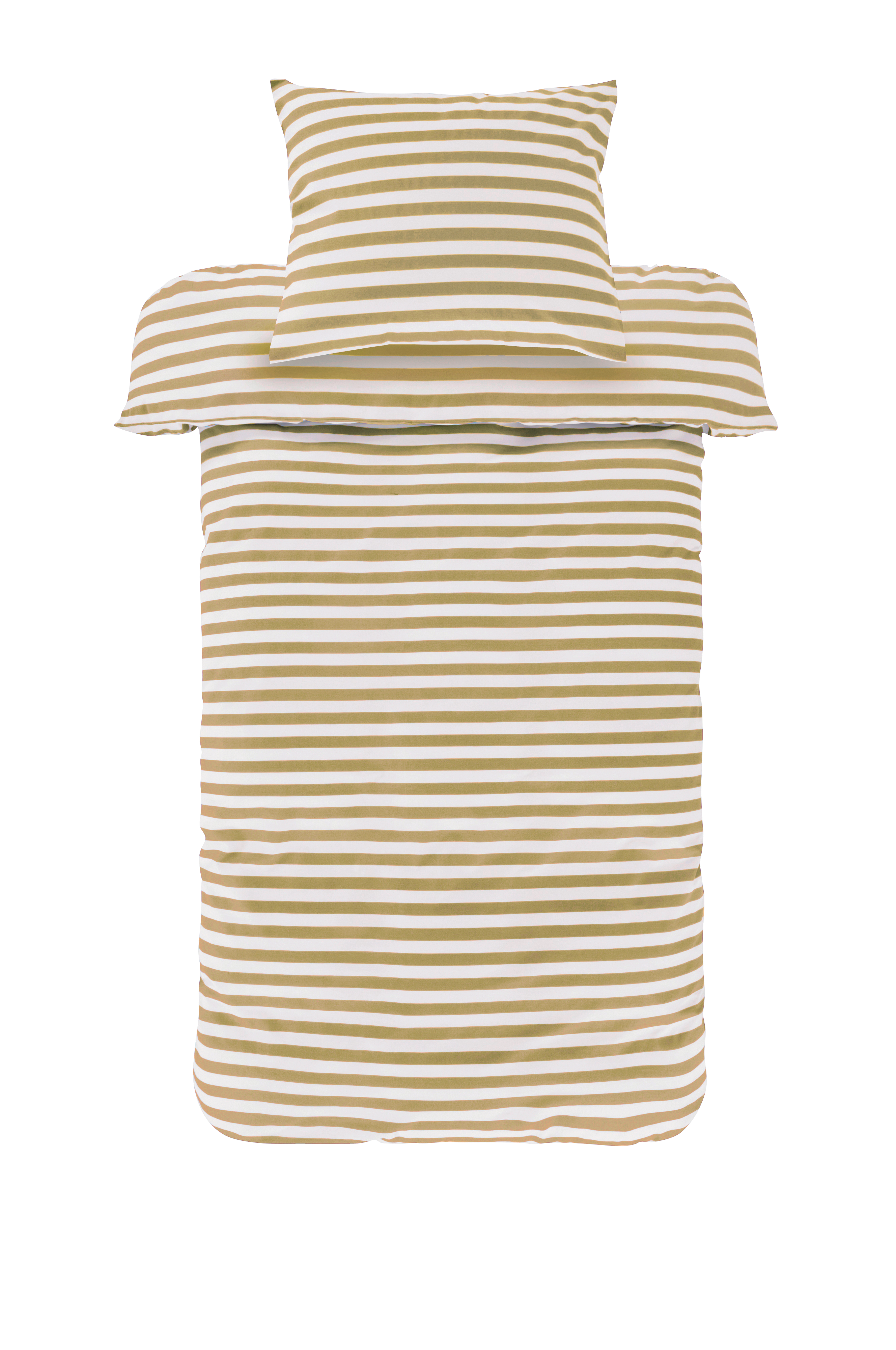 Kaksiosainen raidallinen pussilakanasetti, jossa pussilakana ja tyynyliina puuvillaa. Raikkaat kesäisen väriset poikkiraidat on painettu tyynyliinan ja pussilakanan molemmille puolille. Puuvilla on pehmeä ja miellyttävä materiaali, joka tuntuu viileältä ihoa vasten. Pussilakanan yläkulmissa on aukot, jotka helpottavat pussilakanan vetämistä peiton päälle. Langantiheys 144 tc. (Langantiheys kertoo lankojen lukumäärän/neliötuuma. Mitä suurempi langantiheys, sitä laadukkaampi materiaali. Poikkeuksena pellava, joka kudotaan usein hieman harvemmaksi halutun tunnun saavuttamiseksi.)