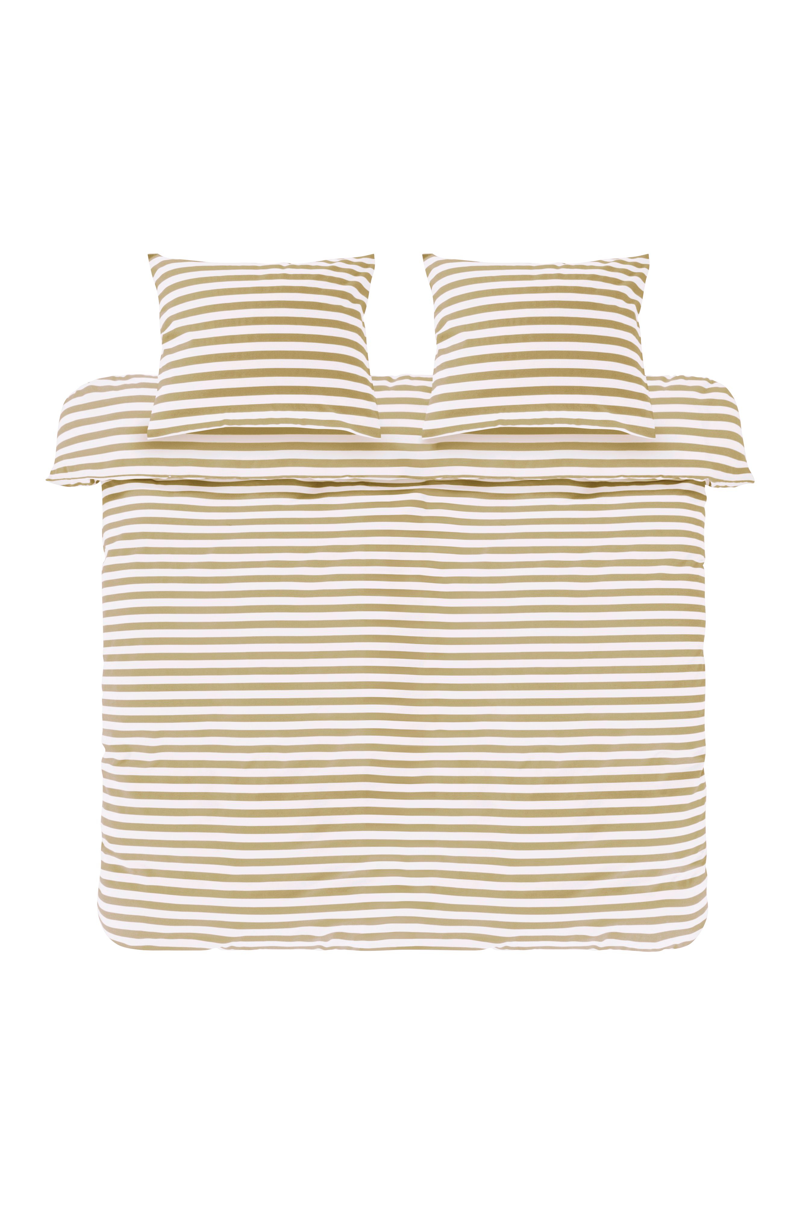 Raidallinen kolmiosainen pussilakanasetti, yksi erittäin leveä pussilakana ja kaksi puuvillaista tyynyliinaa. Poikittainen raita on painettu raikkailla, kesäisillä väreillä tyynyliinojen ja pussilakanan molemmille puolille. Puuvilla on pehmeää ja miellyttävää laatua, joka tuntuu viileältä ihoa vasten.