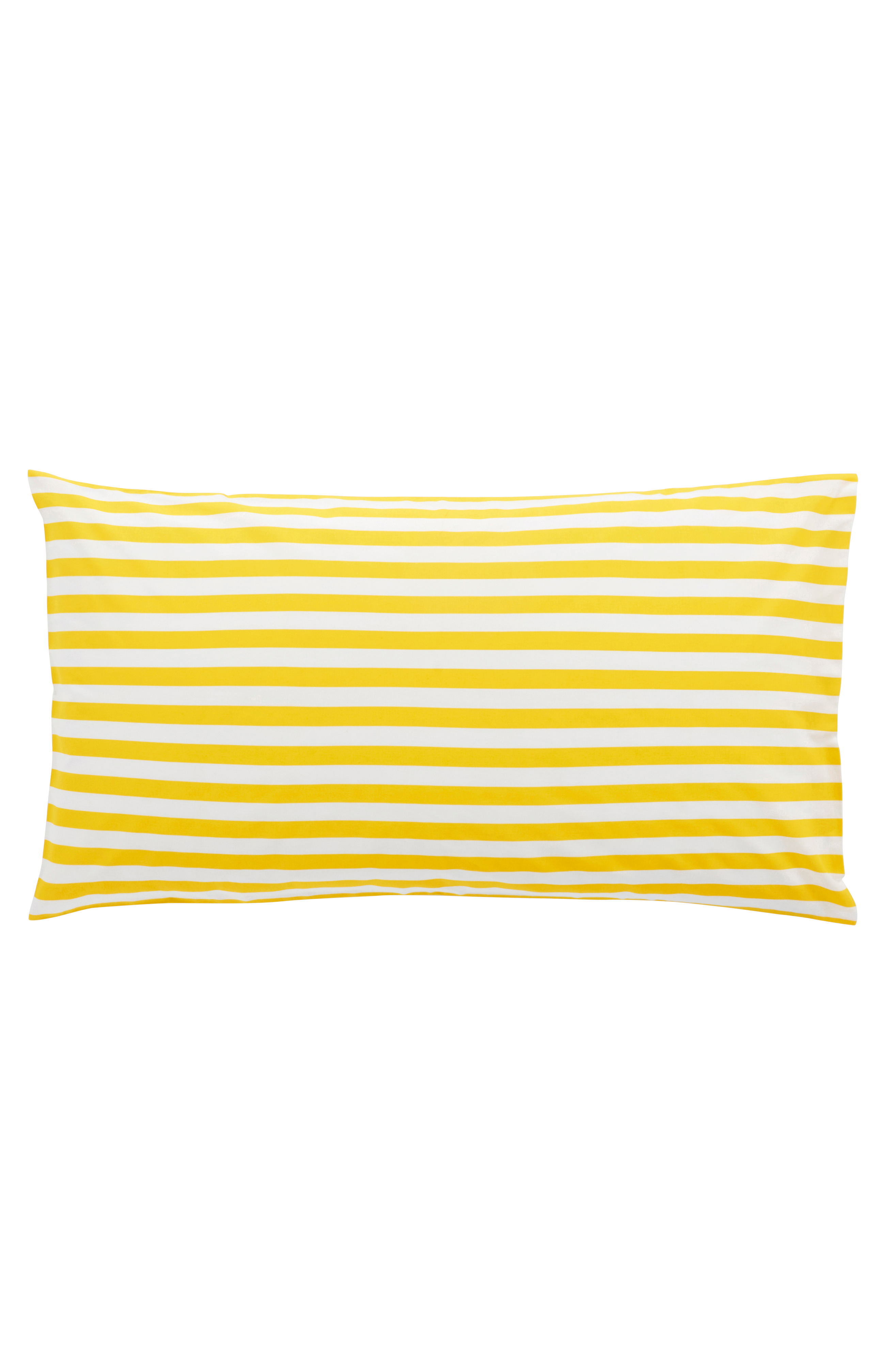 Tyynyliina raidallista puuvillaa, 1/pakkaus. Raikkaat kesäisen väriset poikkiraidat on painettu tyynyliinan molemmille puolille. Puuvilla on pehmeä ja miellyttävä materiaali, joka tuntuu viileältä ihoa vasten. Langantiheys 144 tc. (Langantiheys kertoo lankojen lukumäärän/neliötuuma. Mitä suurempi langantiheys, sitä laadukkaampi materiaali. Poikkeuksena pellava, joka kudotaan usein hieman harvemmaksi halutun tunnun saavuttamiseksi.)