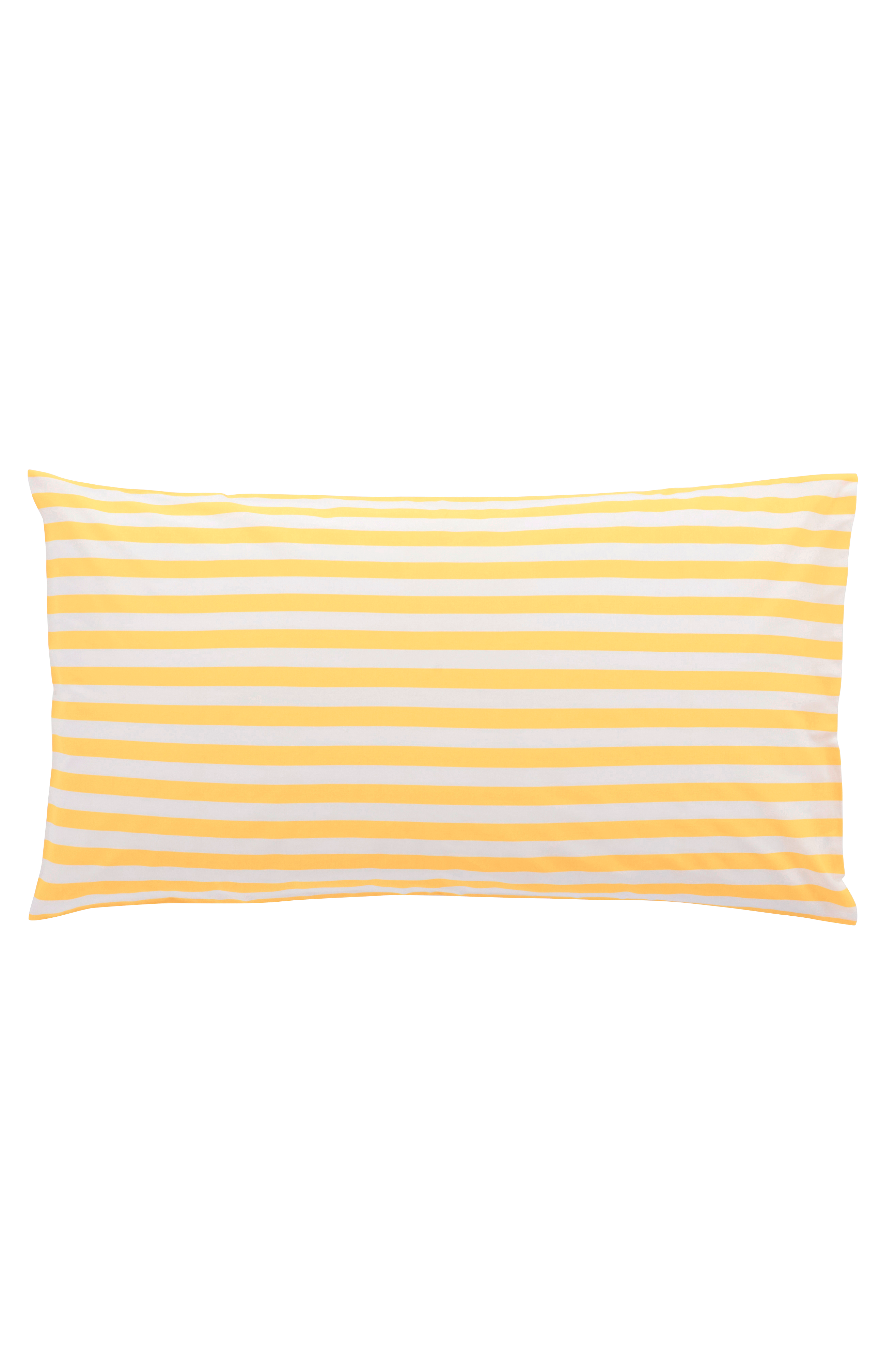 Tyynyliina raidallista puuvillaa, 1/pakkaus. Raikkaat kesäisen väriset poikkiraidat on painettu tyynyliinan molemmille puolille. Puuvilla on pehmeä ja miellyttävä materiaali, joka tuntuu viileältä ihoa vasten. Langantiheys 144 tc. (Langantiheys kertoo lankojen lukumäärän/neliötuuma. Mitä suurempi langantiheys, sitä laadukkaampi materiaali. Poikkeuksena pellava, joka kudotaan usein hieman harvemmaksi halutun tunnun saavuttamiseksi.)
