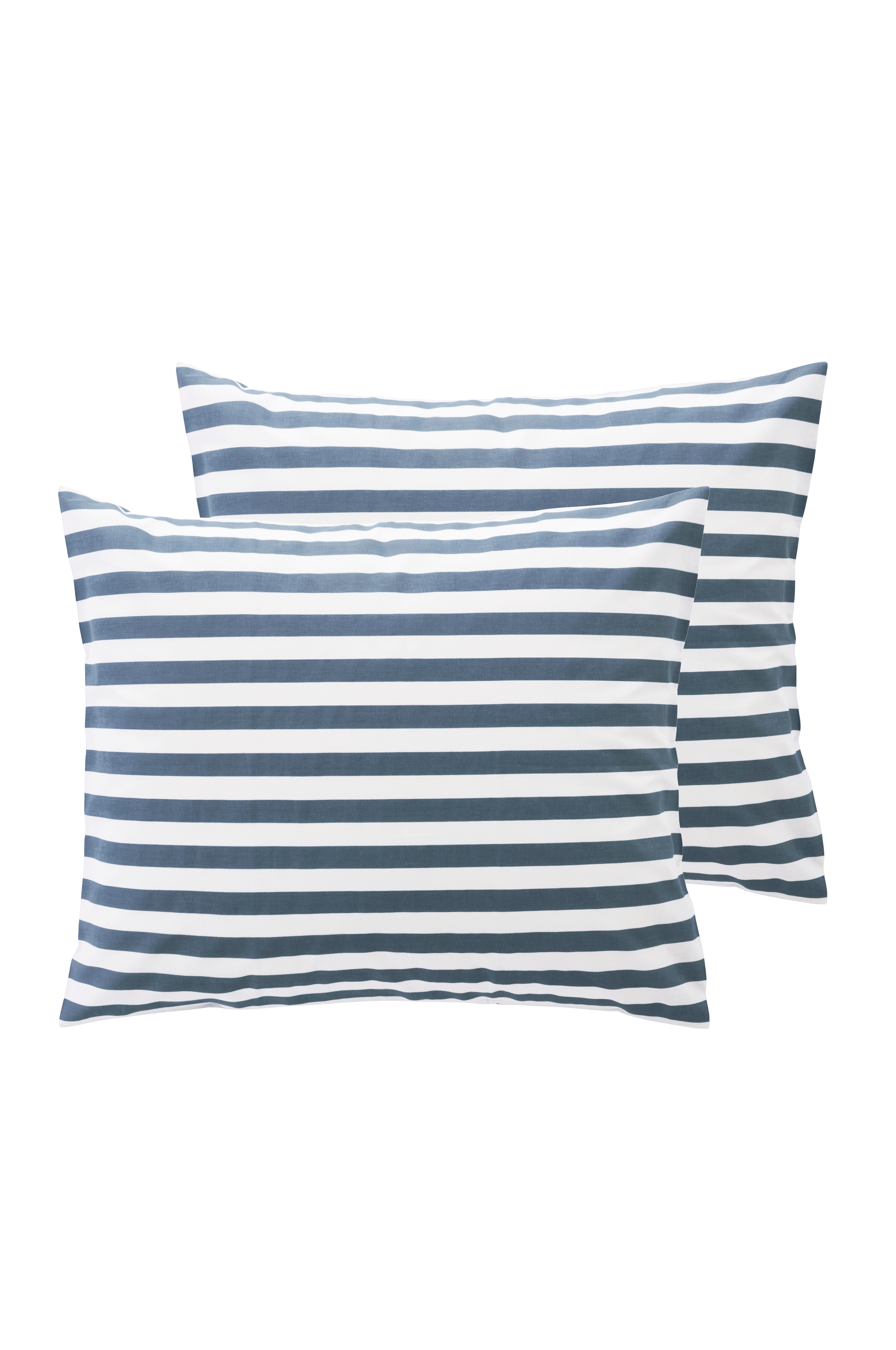 Tyynyliinat raidallista puuvillaa, 2/pakkaus. Raikkaat kesäisen väriset poikkiraidat on painettu tyynyliinan molemmille puolille. Puuvilla on pehmeä ja miellyttävä materiaali, joka tuntuu viileältä ihoa vasten. Langantiheys 144 tc. (Langantiheys kertoo lankojen lukumäärän/neliötuuma. Mitä suurempi langantiheys, sitä laadukkaampi materiaali. Poikkeuksena pellava, joka kudotaan usein hieman harvemmaksi halutun tunnun saavuttamiseksi.)