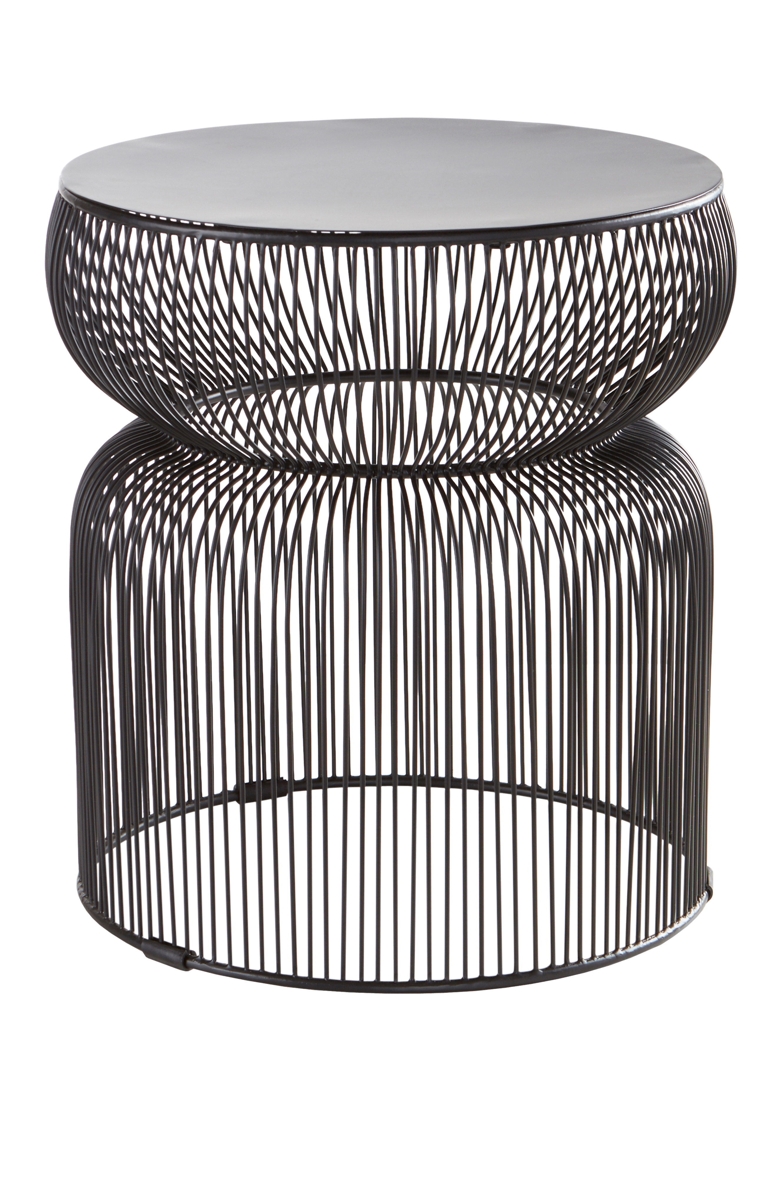 Pyöreä sivupöytä rautaa. Tyylikkäästi pyöreistä mustista metallipinnoista muotoiltu alusta, jossa pehmeät muodot. Samaa materiaalia oleva pöytälevy sulautuu kauniisti alustaan. Ilmavan alustan ansiosta pöydän muotoilu on sekä muhkea että siro. Pöytä sopii yhtä hyvin moderniin ja retrohenkiseen kotiin.